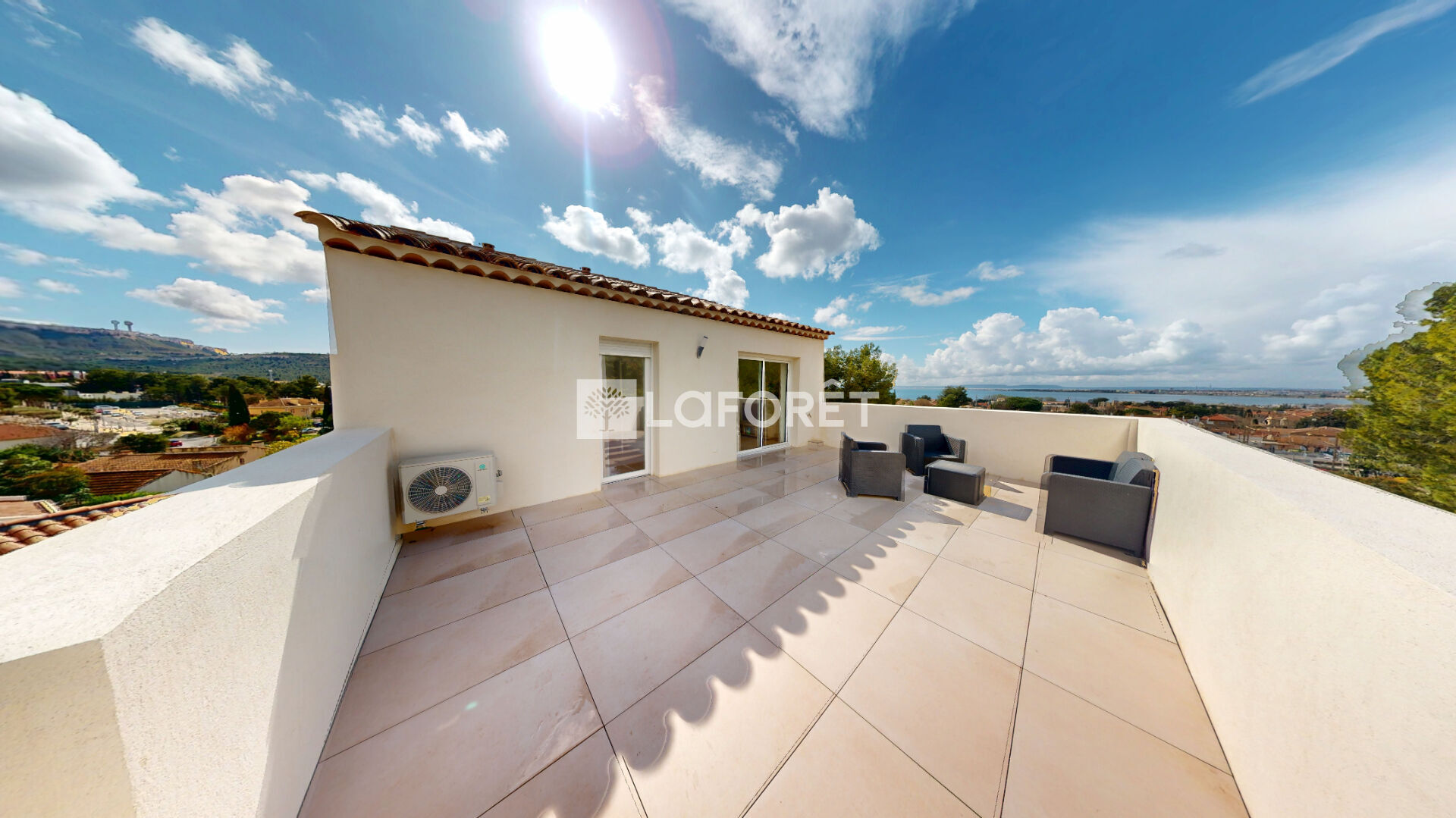 Une terrasse spectaculaire de 38 m², véritable esprit rooftop, offrant une vue imprenable sur l'étang de Berre et les collines environnantes