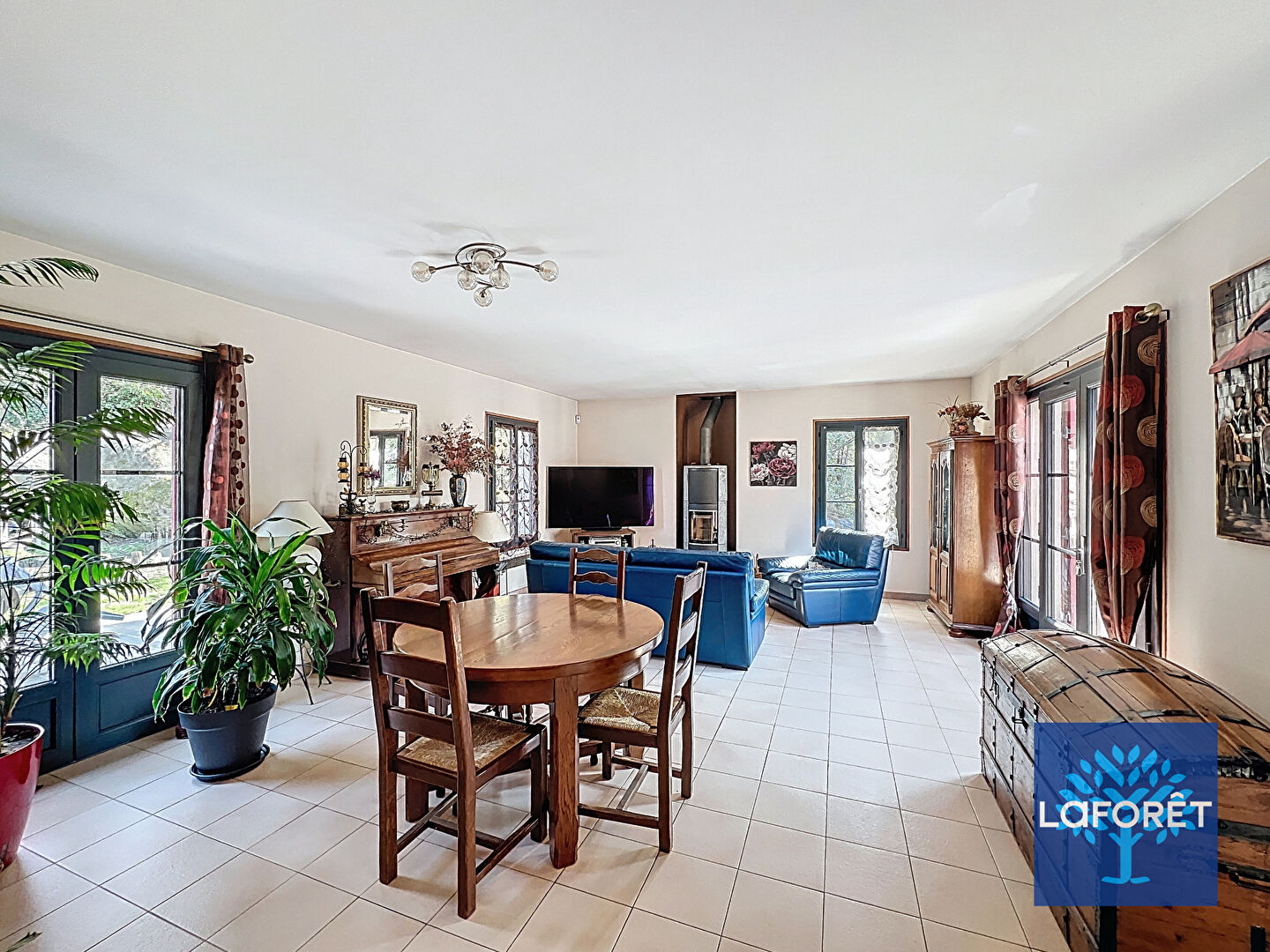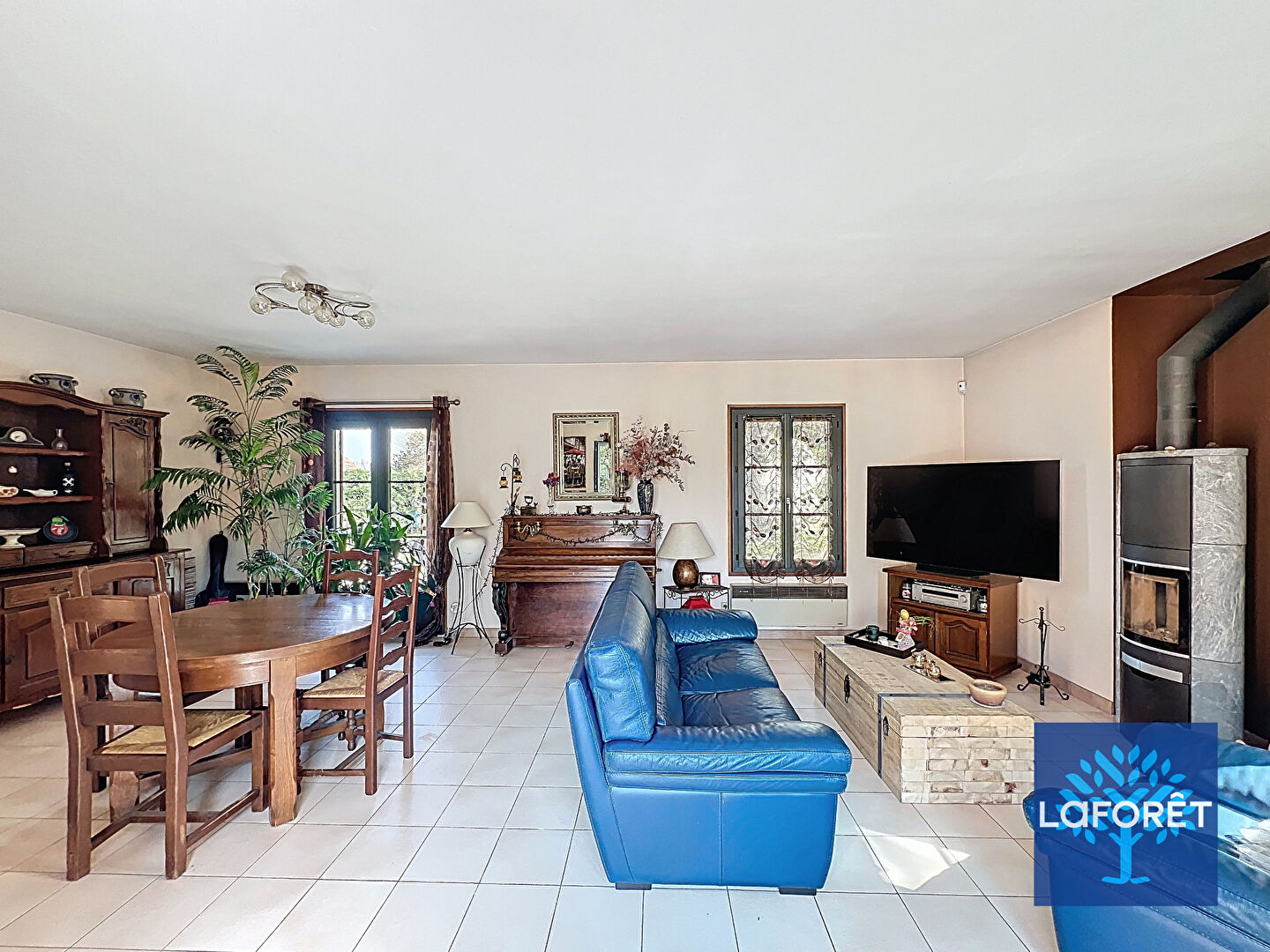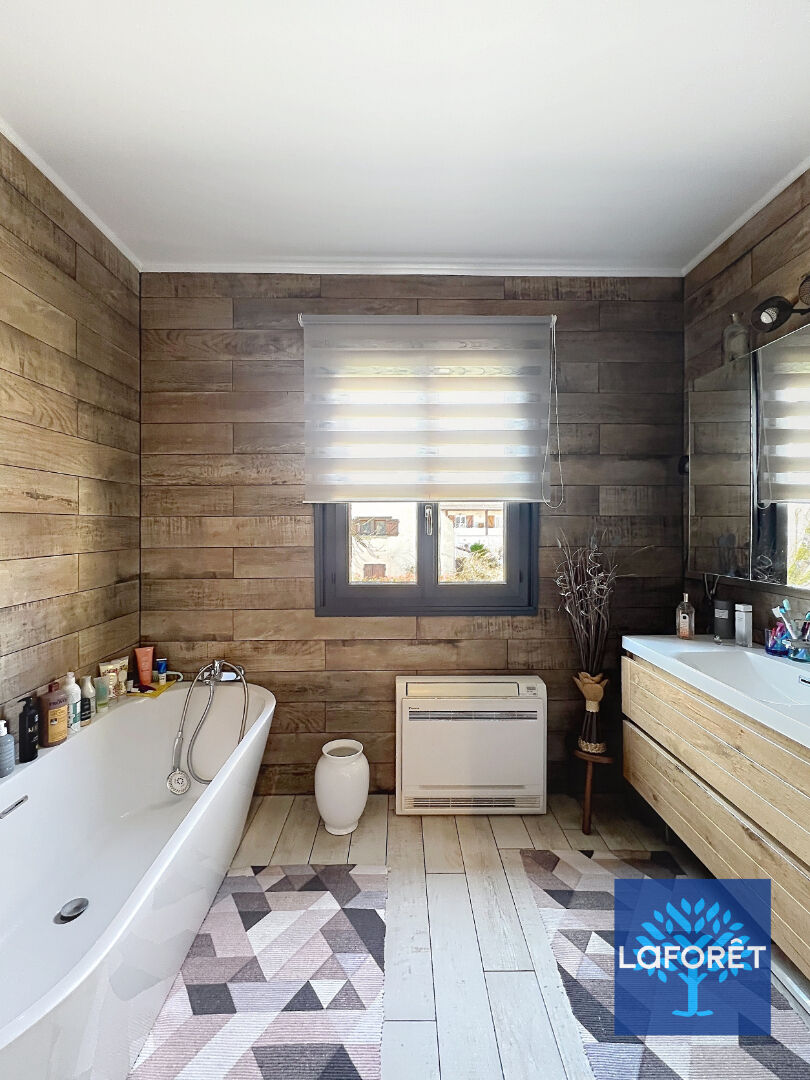 Très bonne performances énergétiques grâce à ses équipements de qualité : climatisation réversible, double vitrage et volets en aluminium, poêle à bois.