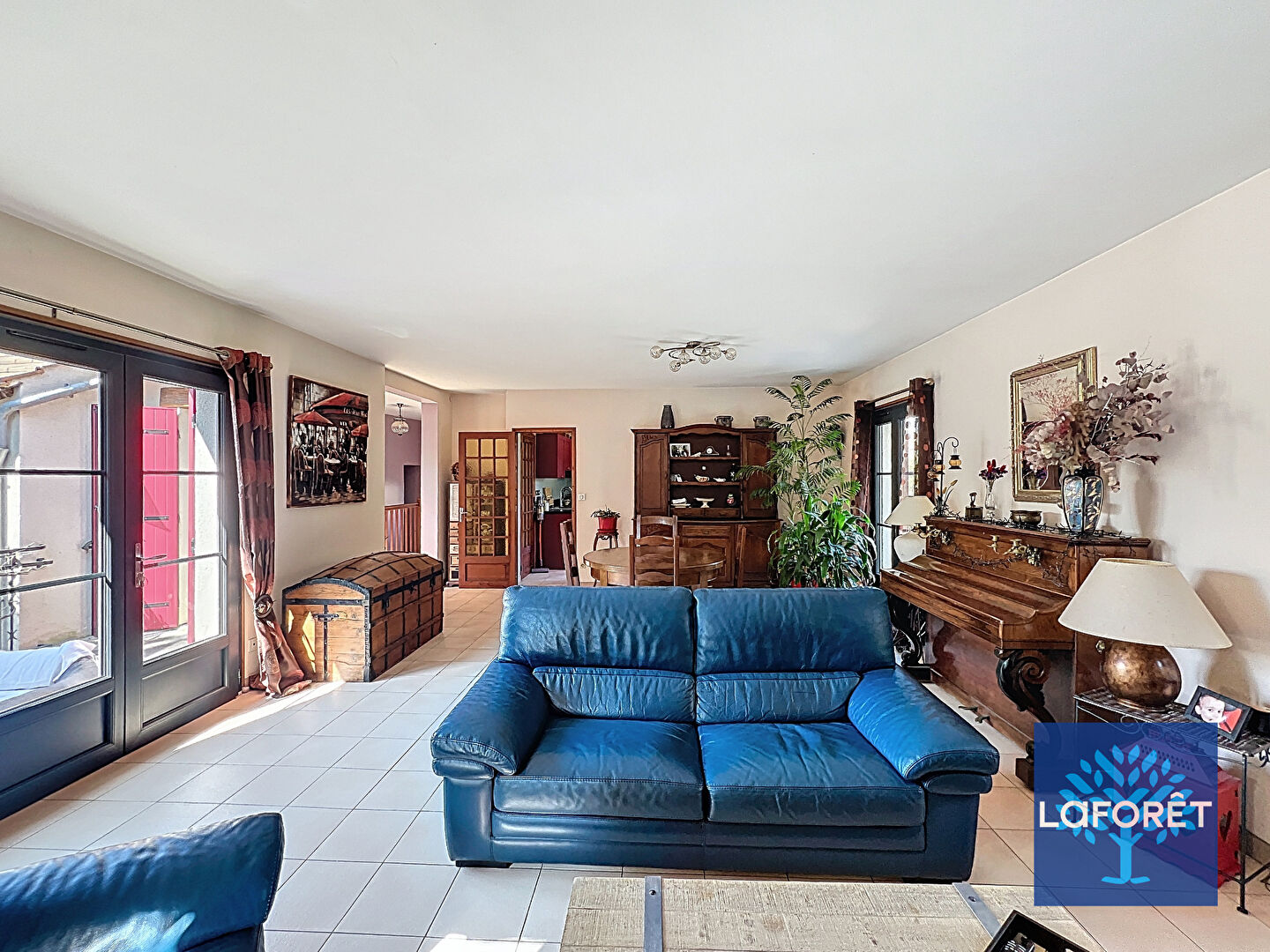 Dès l'entrée, vous serez charmé par les espaces généreux : Elle dessert une grande pièce de 36 m², la buanderie, un wc, une chambre, le garage double et une cave.