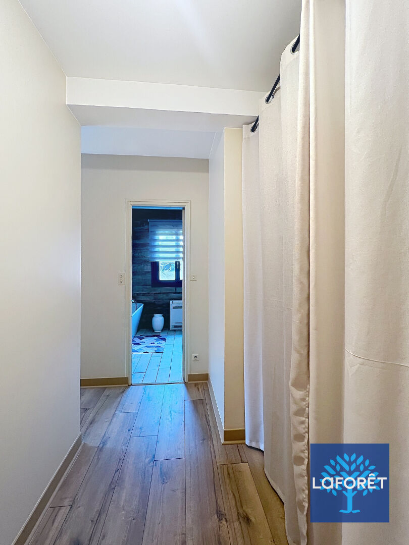 A l'étage, de plain pied sur le jardin et les terrasses, vous trouverez un palier, séjour avec poêle à bois s'ouvrant de manière traversante sur 2 terrasses et le jardin. Cuisine aménagée et équipée. Le dégagement dessert les 3 suites, dont 2 avec salle d'eau et la grande suite parentale de 25m² qui vous propose un dressing ainsi qu'une salle de bains mixte avec douche et baignoire, pour un confort optimal. 2 Wc séparés.