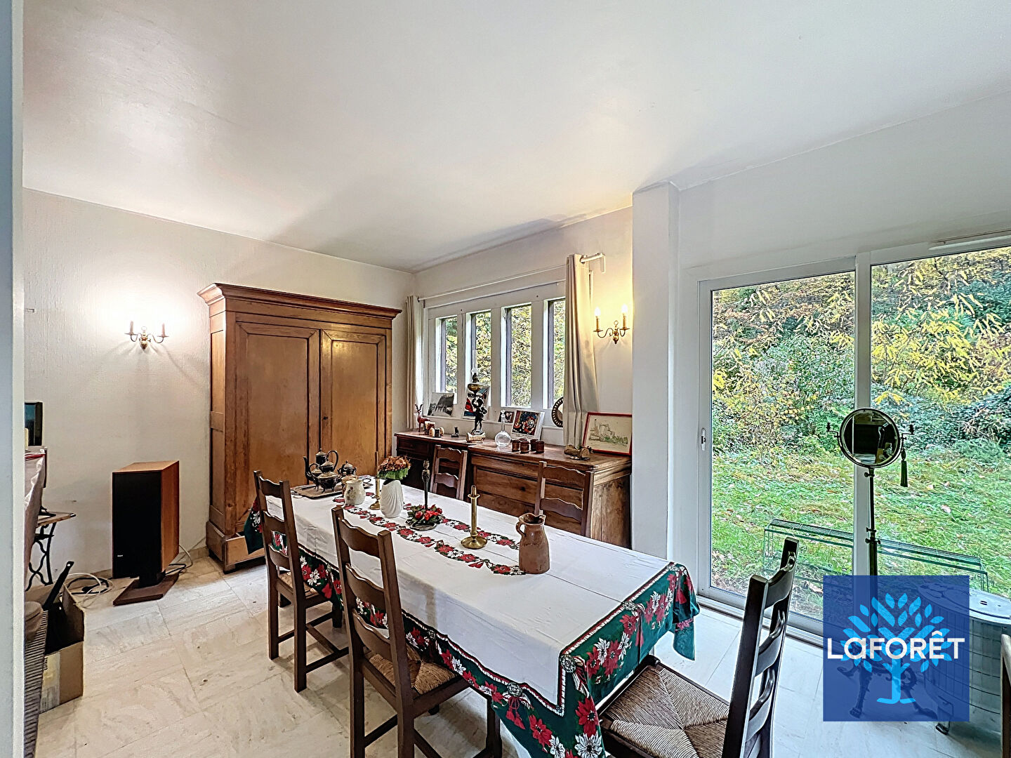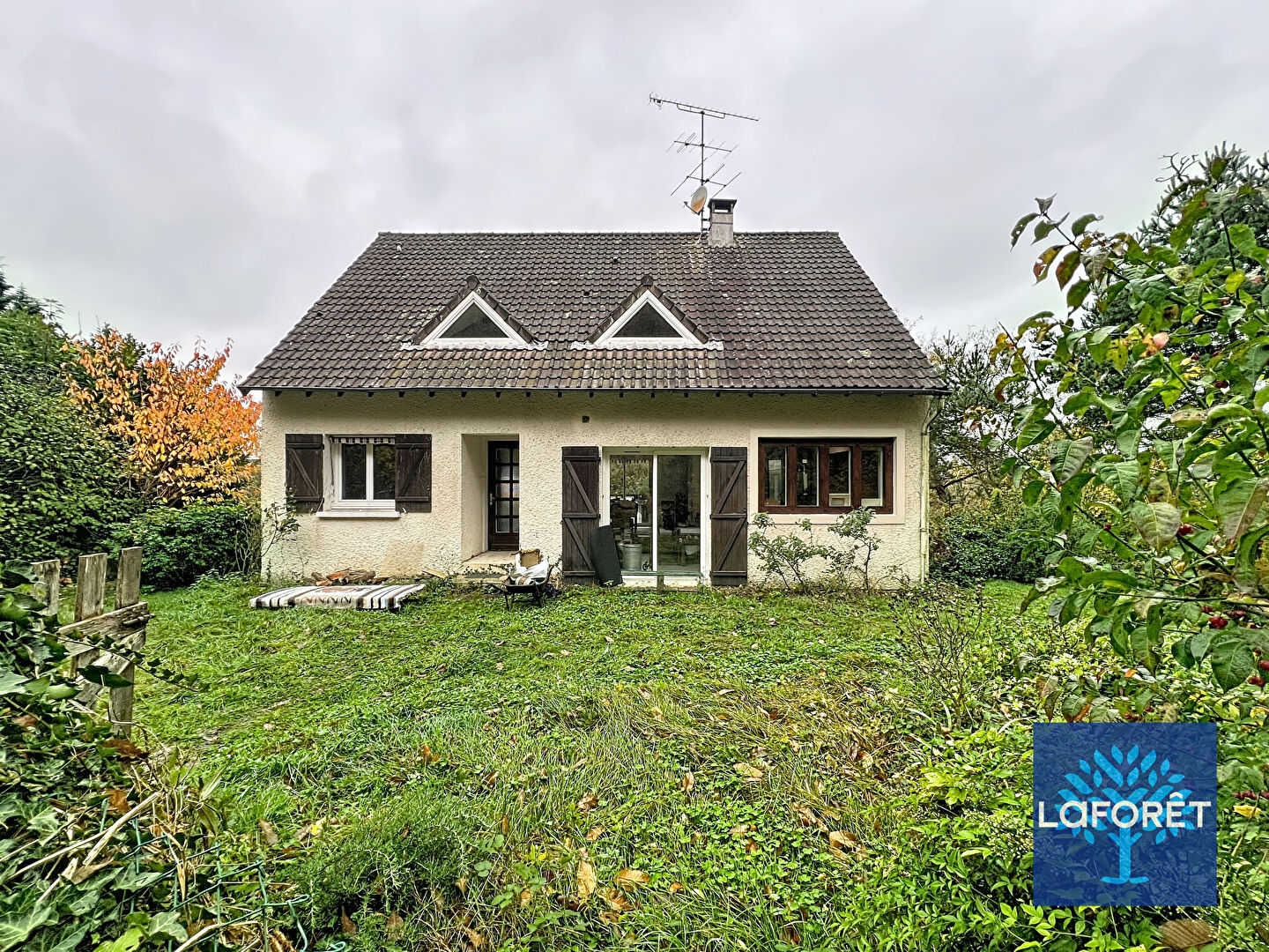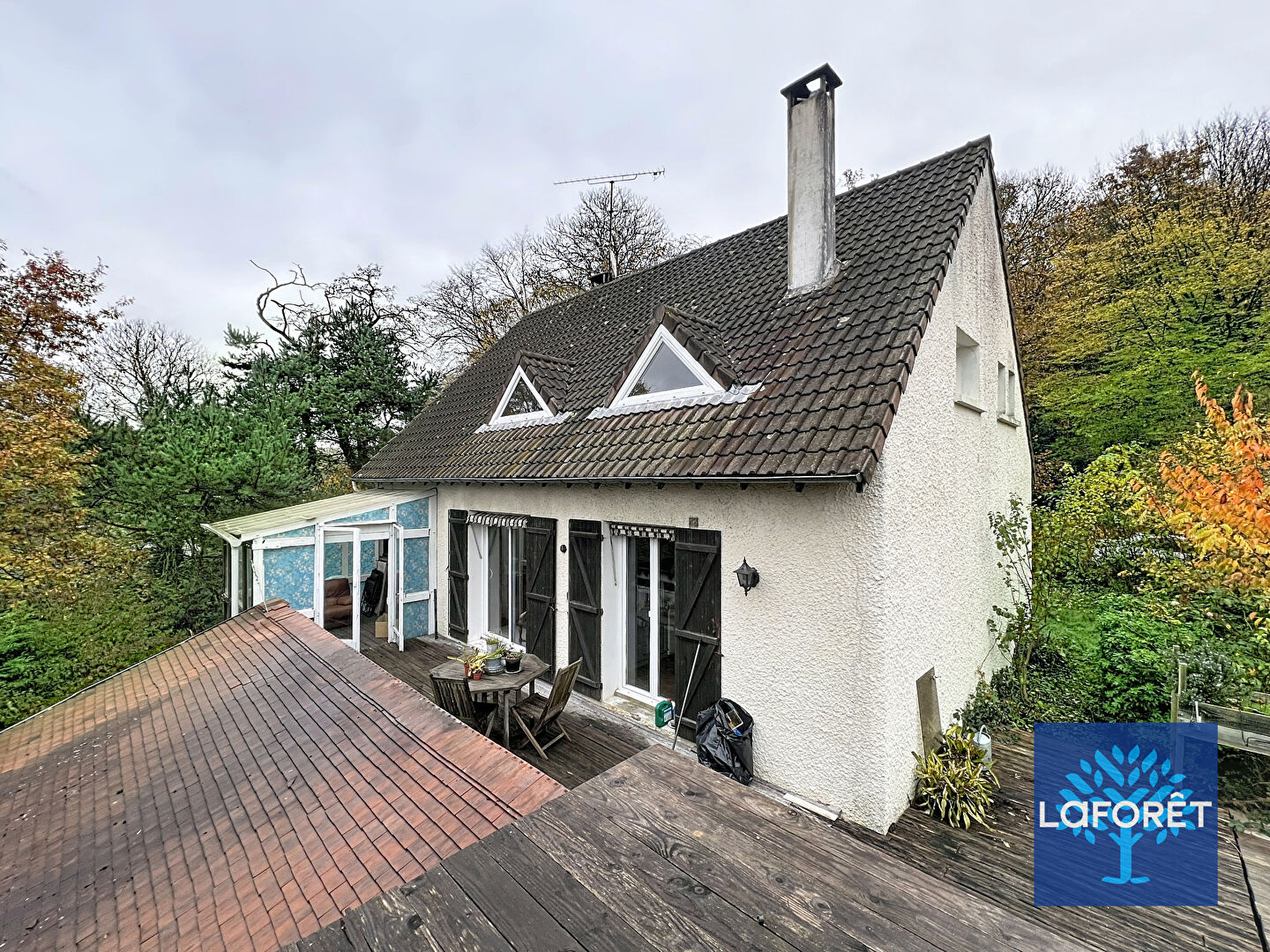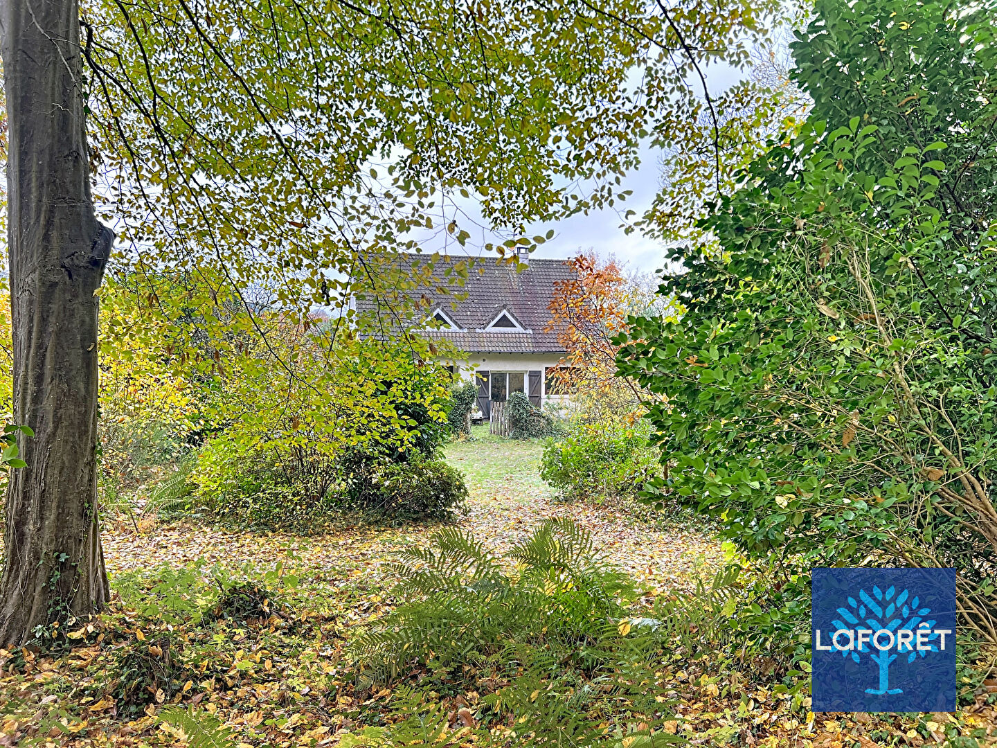 Nichée au coeur de la forêt, Maison aux volumes généreux, LUMINEUSE et FONCTIONNELLE, offrant 2 grands garages double et un jardin sans vis à vis avec une parcelle de foret.