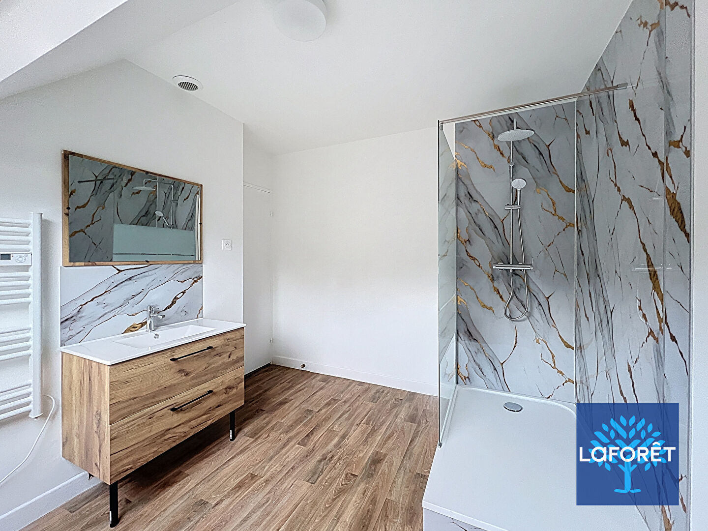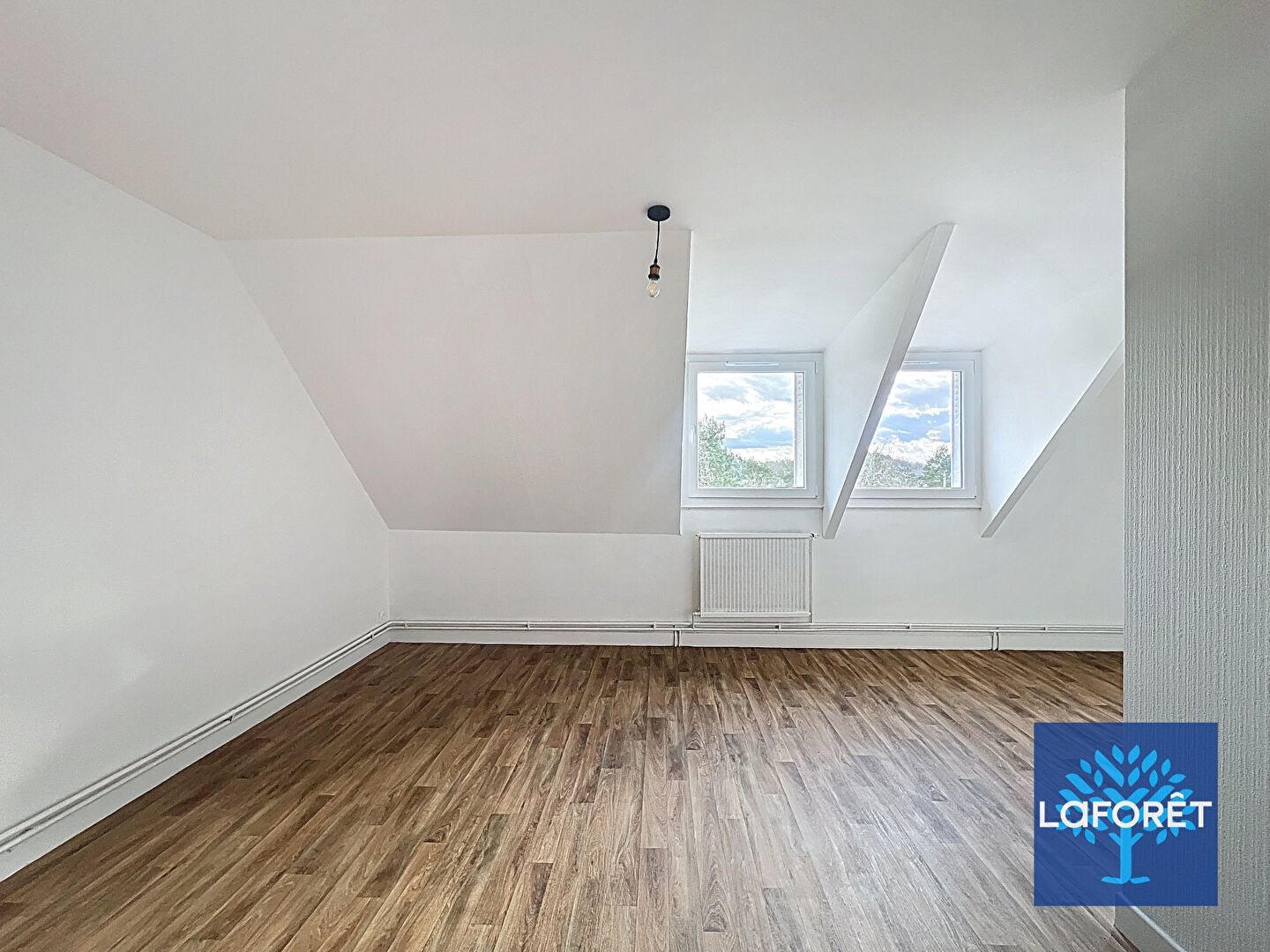 Un dégagement avec placard dessert deux chambres, une salle de bain, des toilettes séparées.