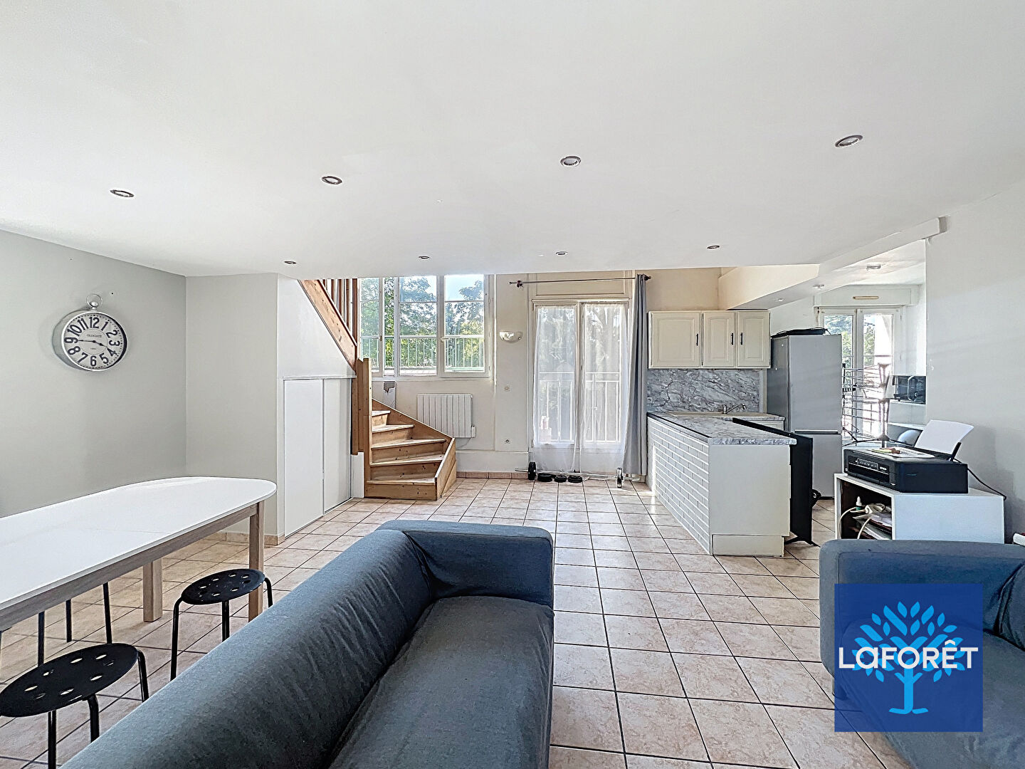 Vous découvrez une entrée, grand séjour en partie cathédral et CUISINE ouverte aménagée et équipée offrant 35m² d'espace de vie avec de grandes baies vitrées et un wc séparés.