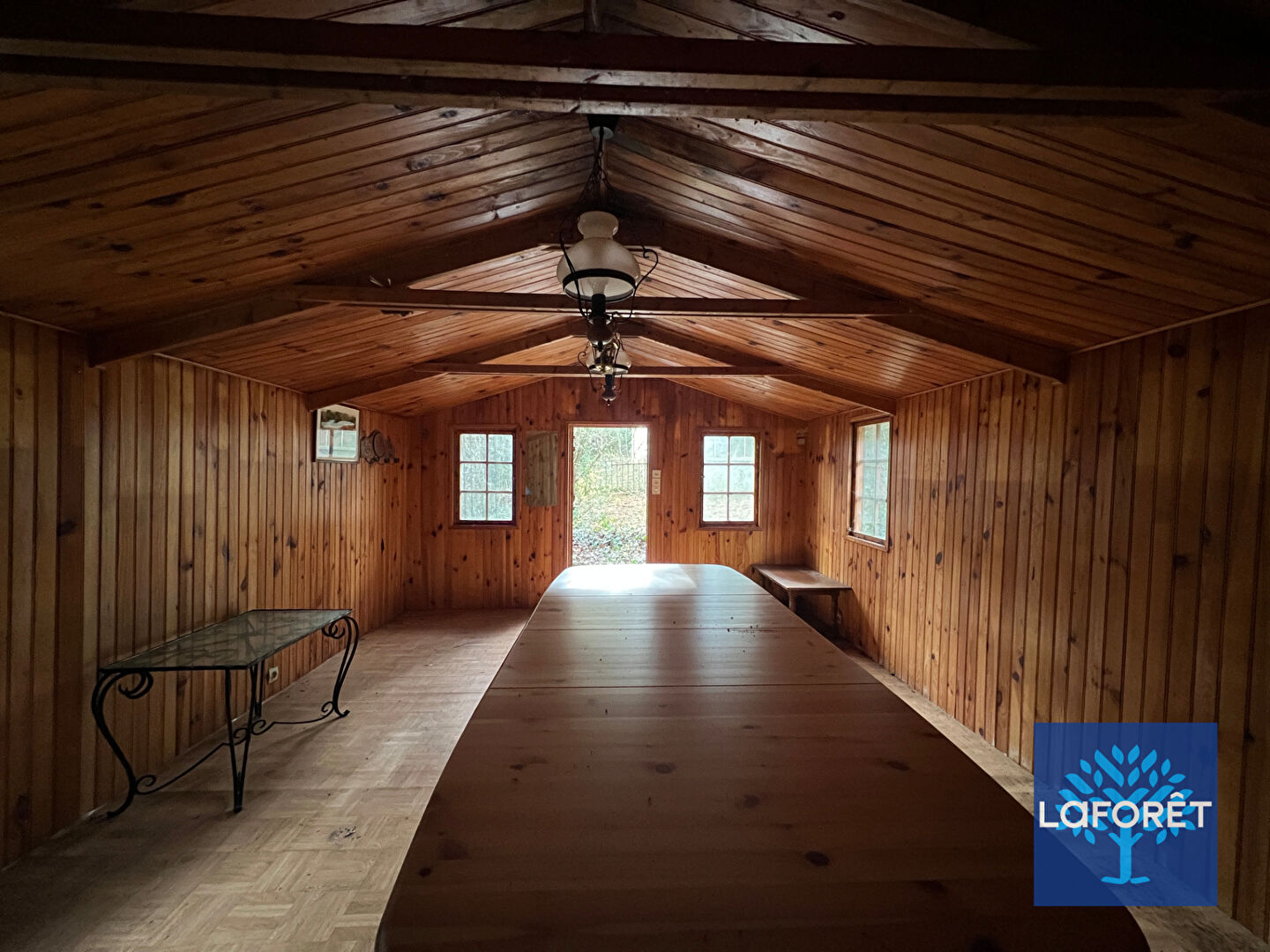 A l'arrière de la maison une véranda, un grand chalet de 15 m² environ, une serre, un atelier.