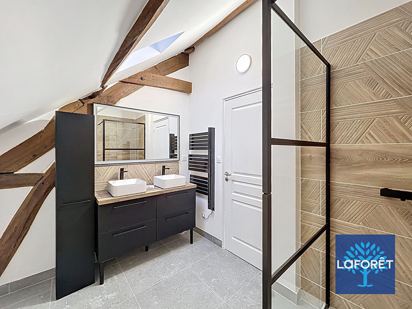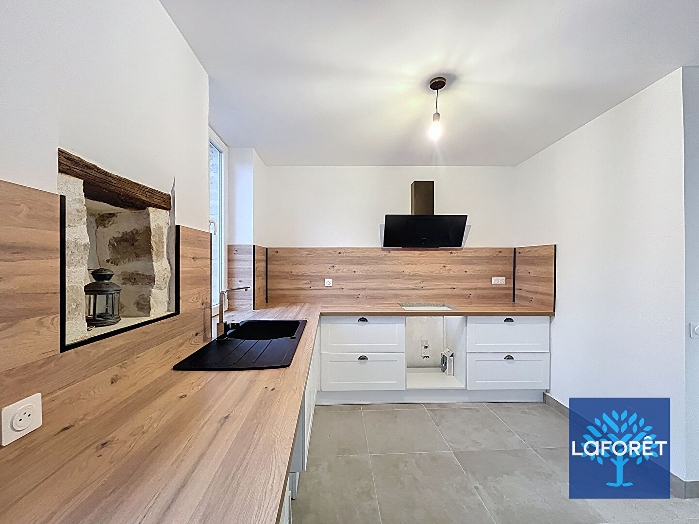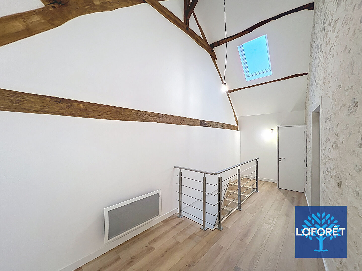 Maison rénovée en 2025, LUMINEUSE et FONCTIONNELLE offrant de beaux VOLUMES et le charme de l'ancien ! Charpente et murs en pierre apparentes.