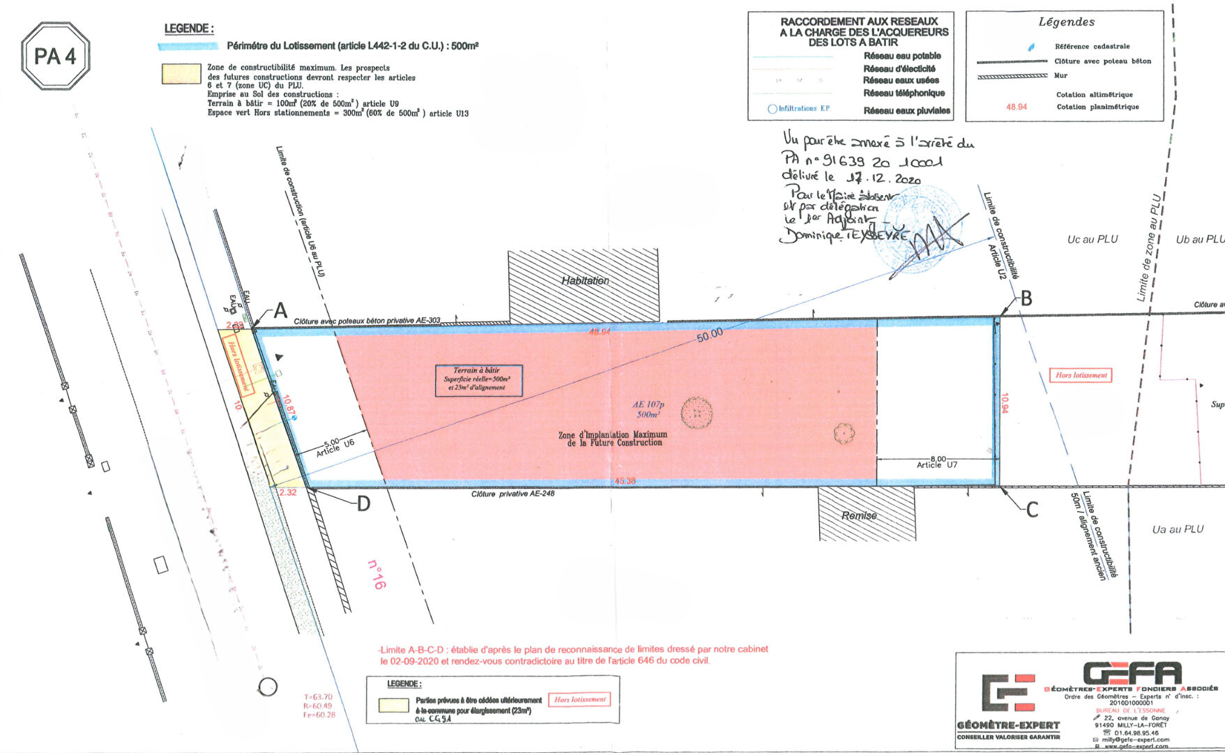 PLU ZONE UC, emprise au sol des constructions 100m² (20% de 500m²), hors piscine et terrasse. Espaces verts hors stationnements 300 m² ( 60% de 500m²).