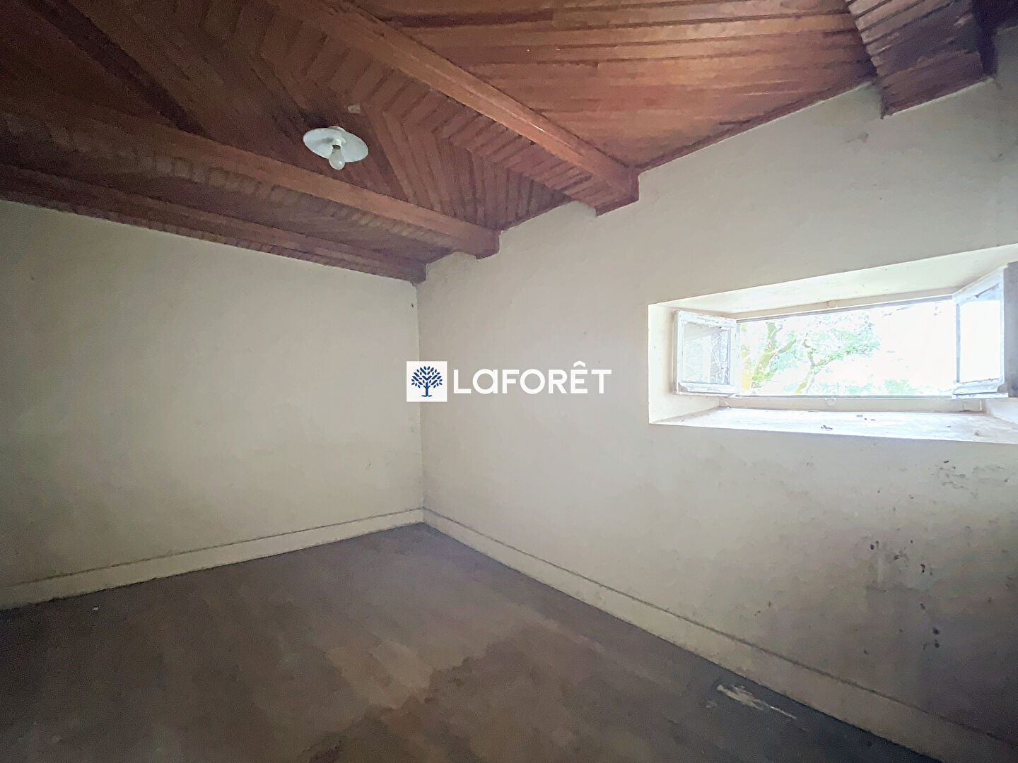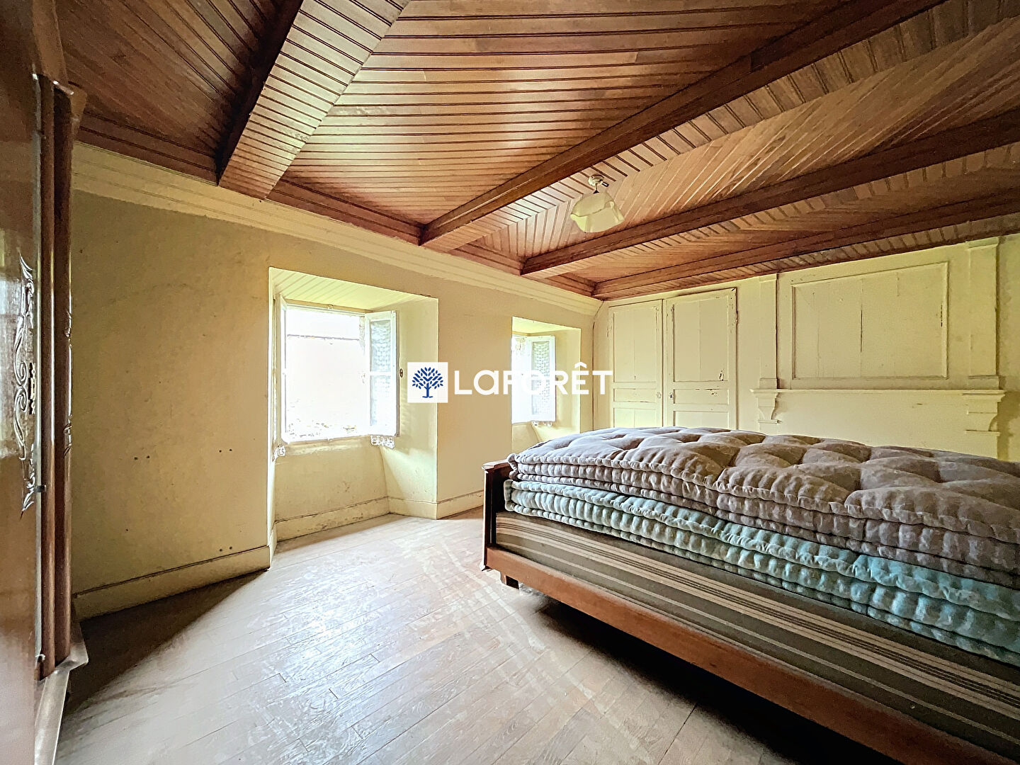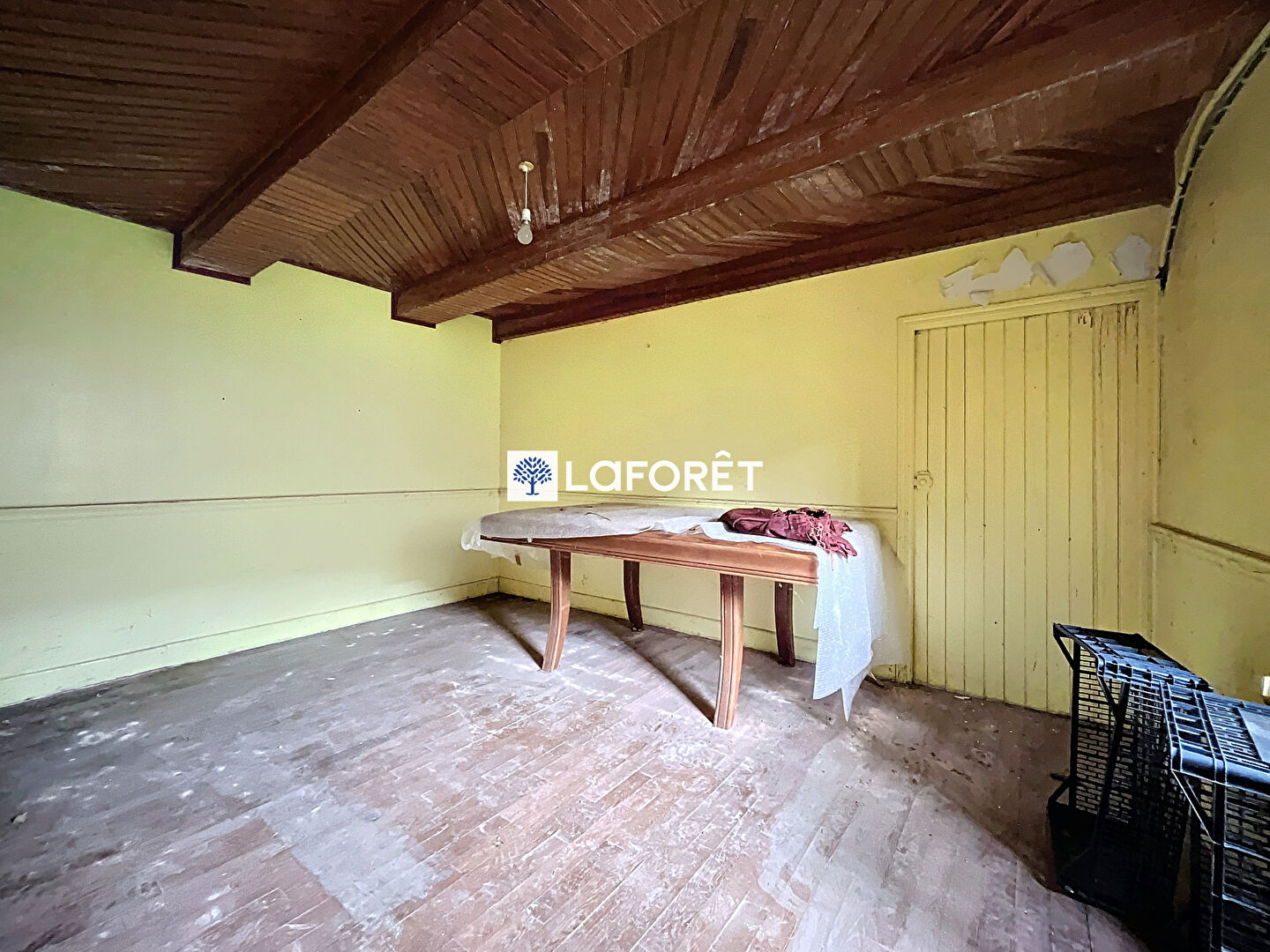 Elle se compose, au rez-de-chaussée, d'une pièce à vivre avec son cantou, d'une seconde pièce à aménager et d'une cave. À l'étage, vous trouverez deux chambres (12 m² et 14 m²), un bureau de 7 m², un point d'eau, ainsi qu'un espace de stockage.