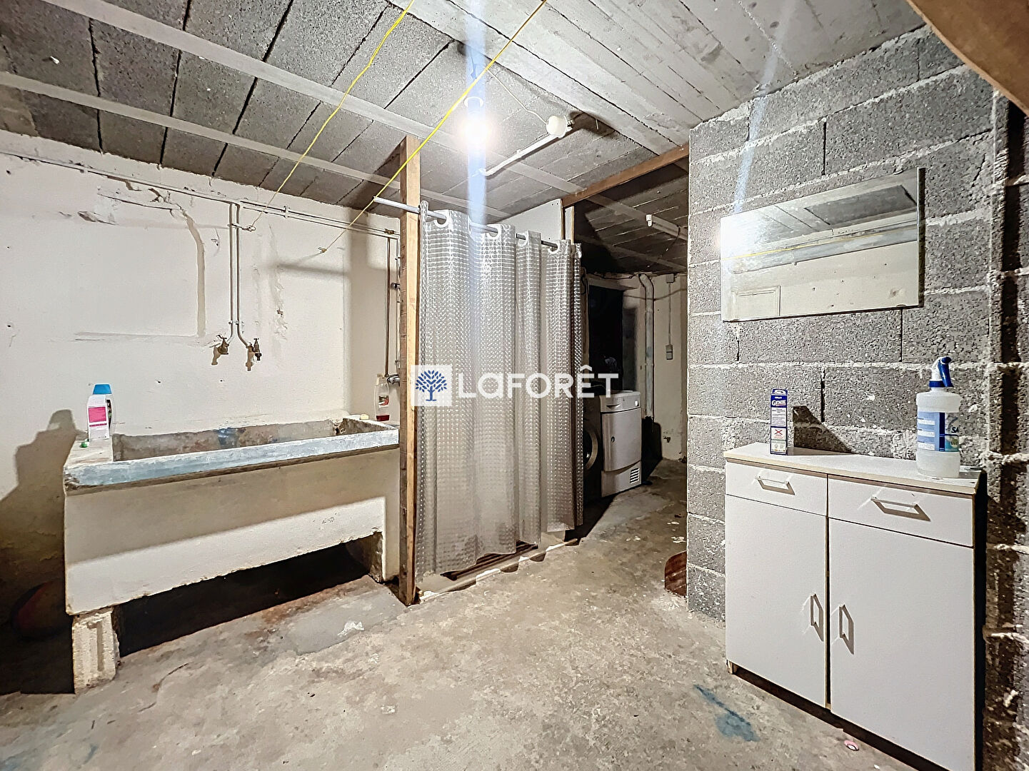 Le sous-sol offre un espace buanderie et des zones de stockage.