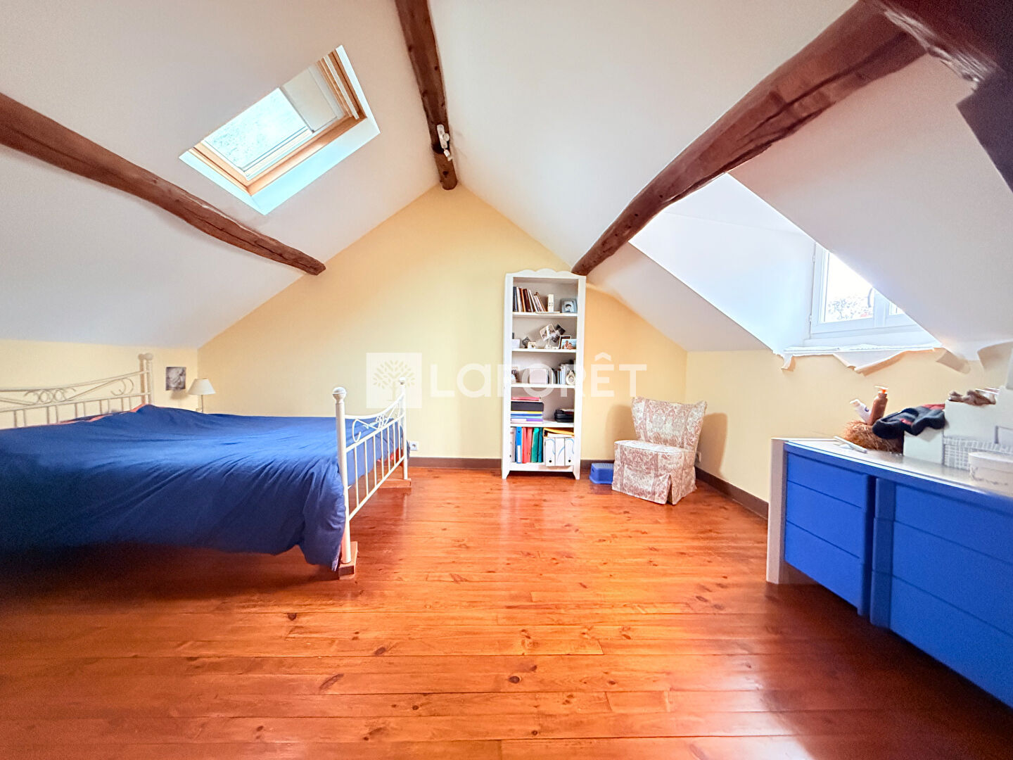 Le deuxième étage accueille une troisième chambre, avec la possibilité d'aménager une chambre supplémentaire ou une salle d'eau (arrivées d'eau existantes) et un WC.