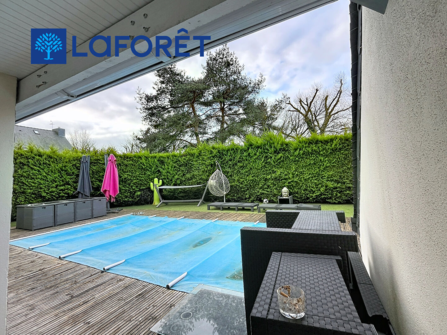 À l'extérieur, la propriété offre une piscine et un jacuzzi de qualité, créant un espace de détente privé