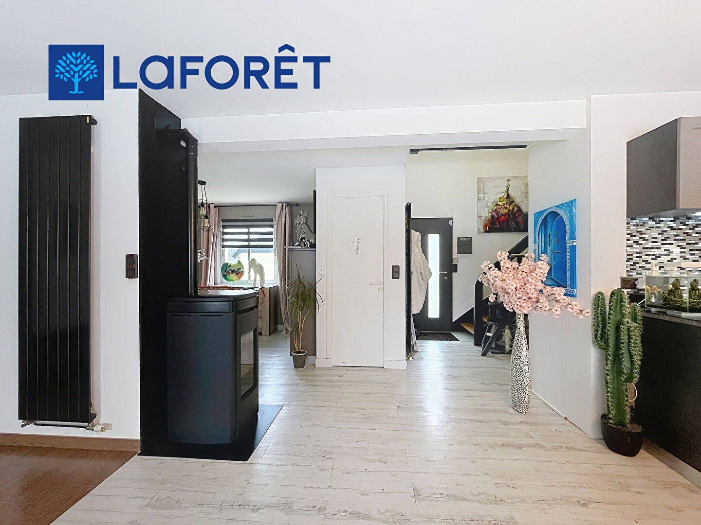 L'espace de vie, ouvert et fonctionnel, comprend une cuisine aménagée et équipée avec 2 salons avec cheminée et poêle de 2026 une chambre + une suite avec dressing et une salle d'eau À l'étage, deux chambres et un bureau, une salle de bains avec douche, des WC séparés .