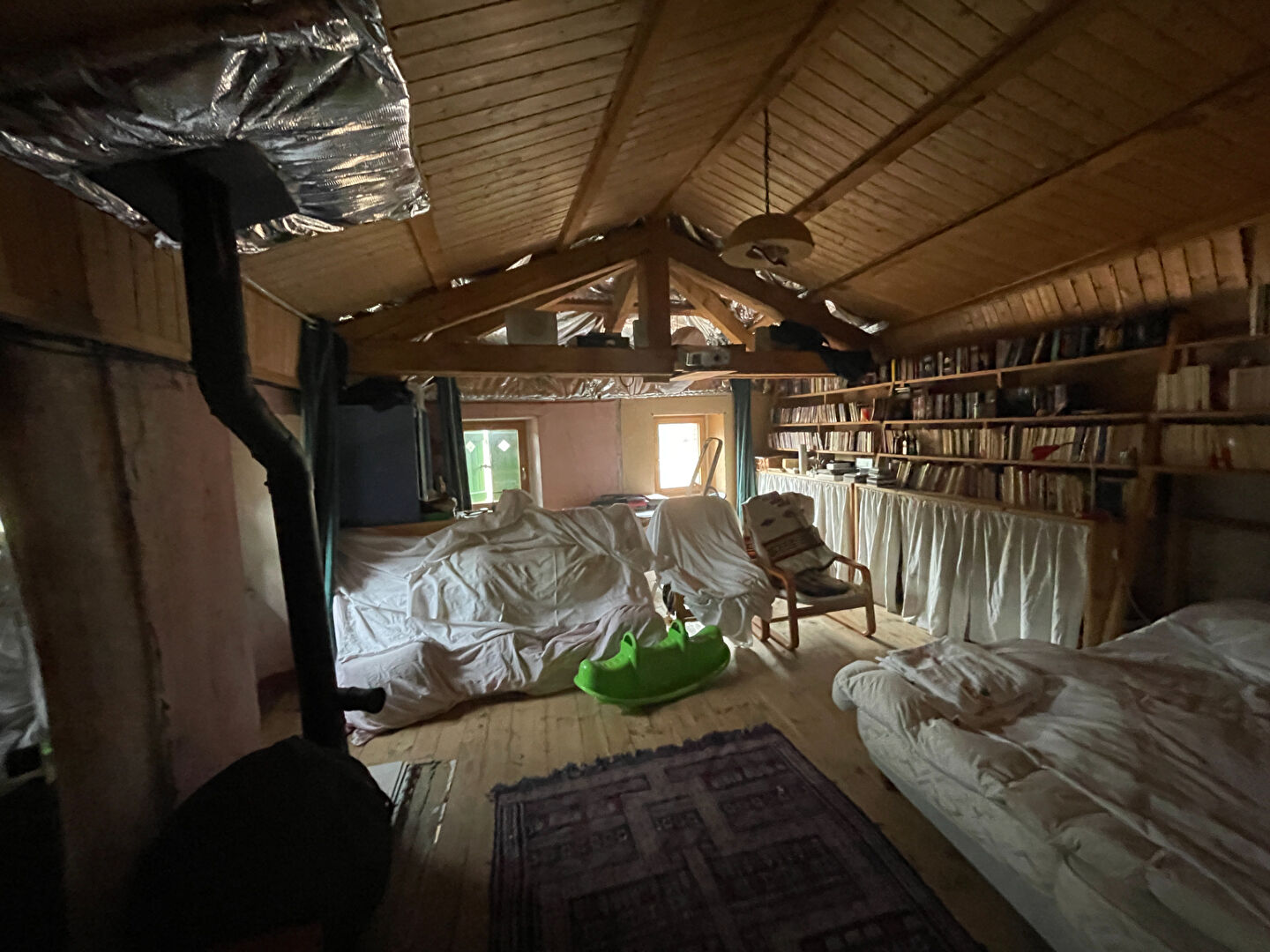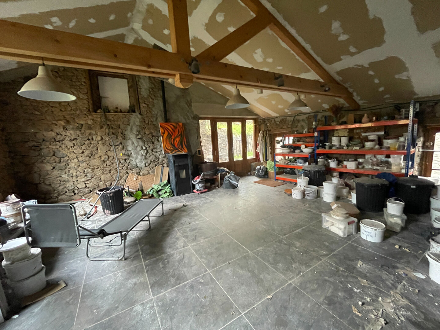 Ancienne étable avec atelier à l'étage d'environ 45 m², sur dalle béton et carrelage, chauffé par poêle à bois, toiture refaite.