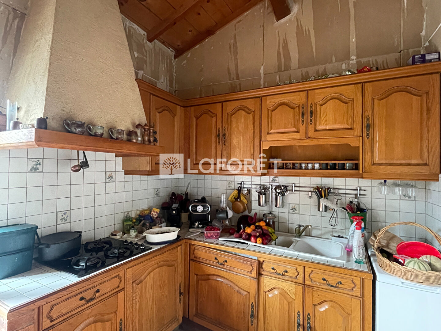 À l'extérieur, vous trouverez un garage, une terrasse sans vis-à-vis, et un abri pour le stockage du bois. La maison est située dans un environnement calme, à proximité immédiate de la forêt. Des travaux de rafraîchissement sont à prévoir, vous permettant de personnaliser la maison selon vos goûts.