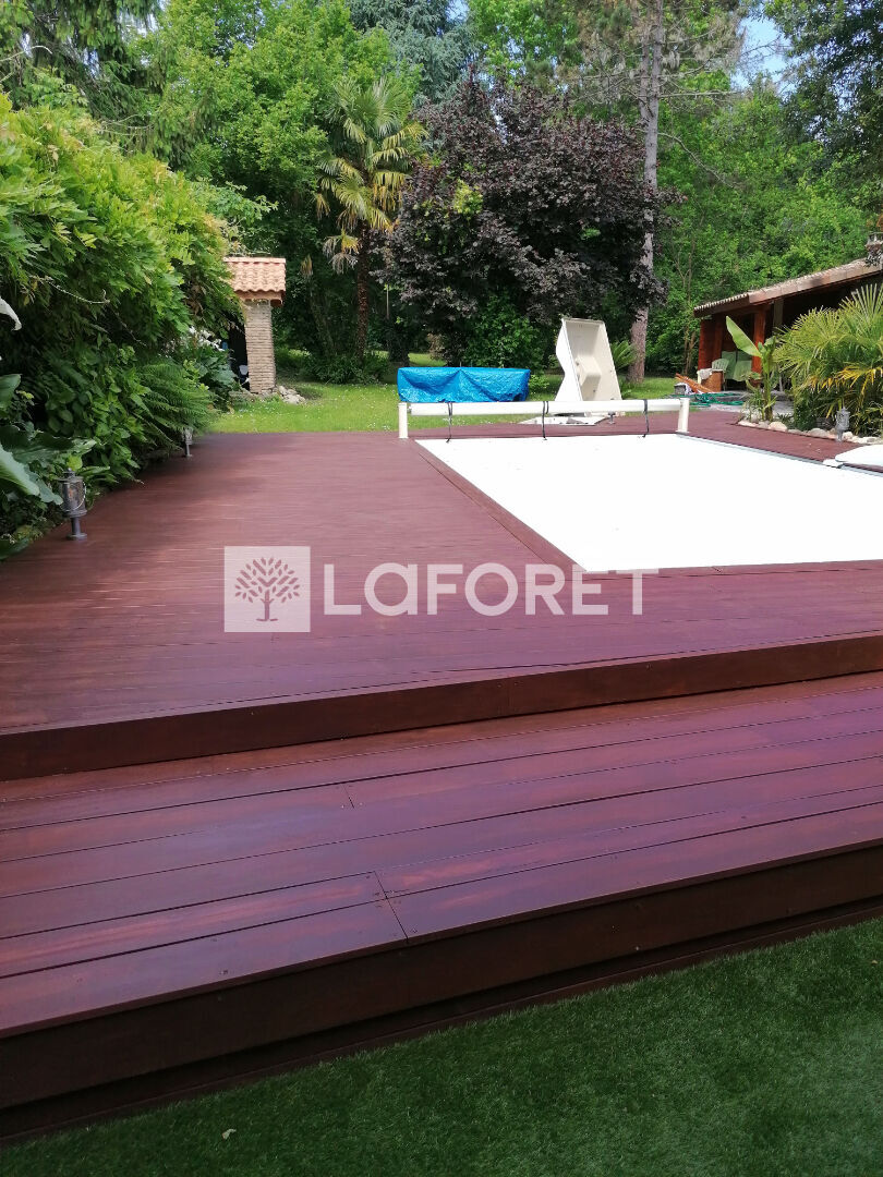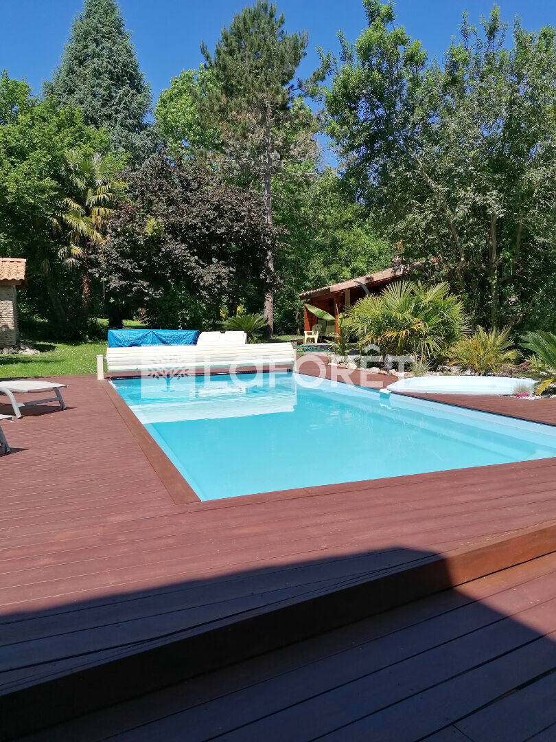 Jardin à l'arrière de la maison, piscine, barbecue, 2 terrasses, abri de jardin