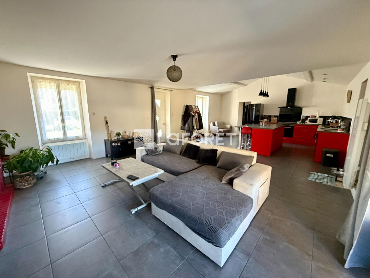 Une belle pièce de vie lumineuse avec cuisine ouverte