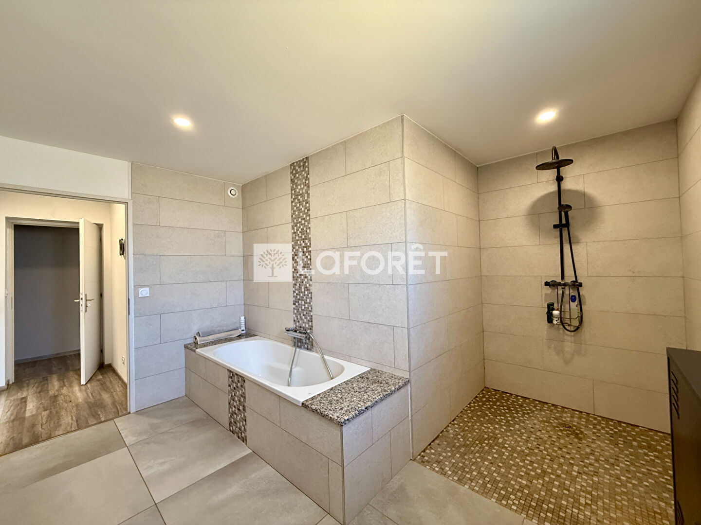 - Au rez-de-chaussée : entrée, cuisine aménagée et équipée, spacieux séjour ouvert sur un salon lumineux, deux chambres dont une suite parentale, cellier, WC indépendant.