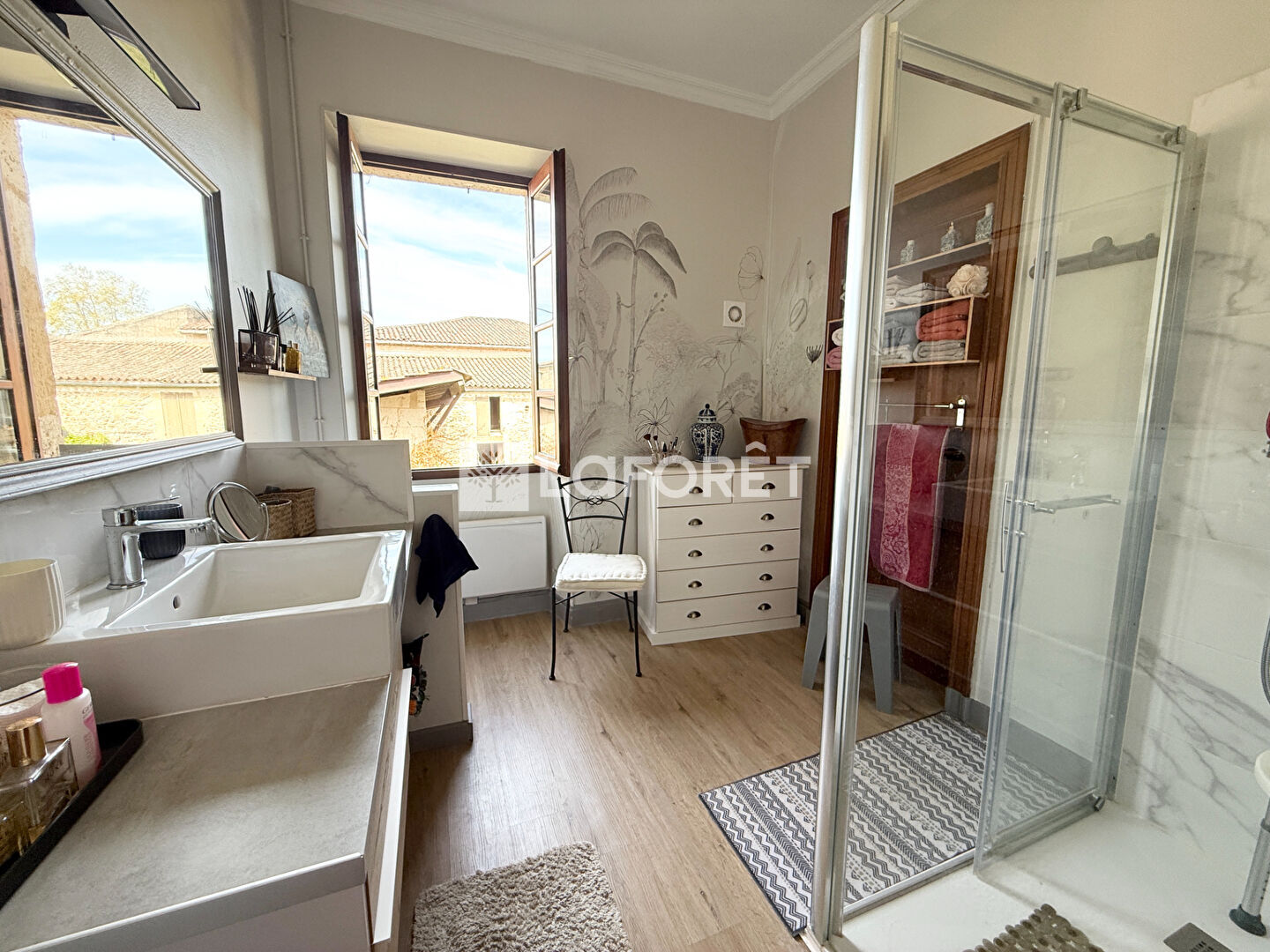 Le tout est édifié sur une parcelle arborée de plus de 600 m², bien exposée et agrémentée :