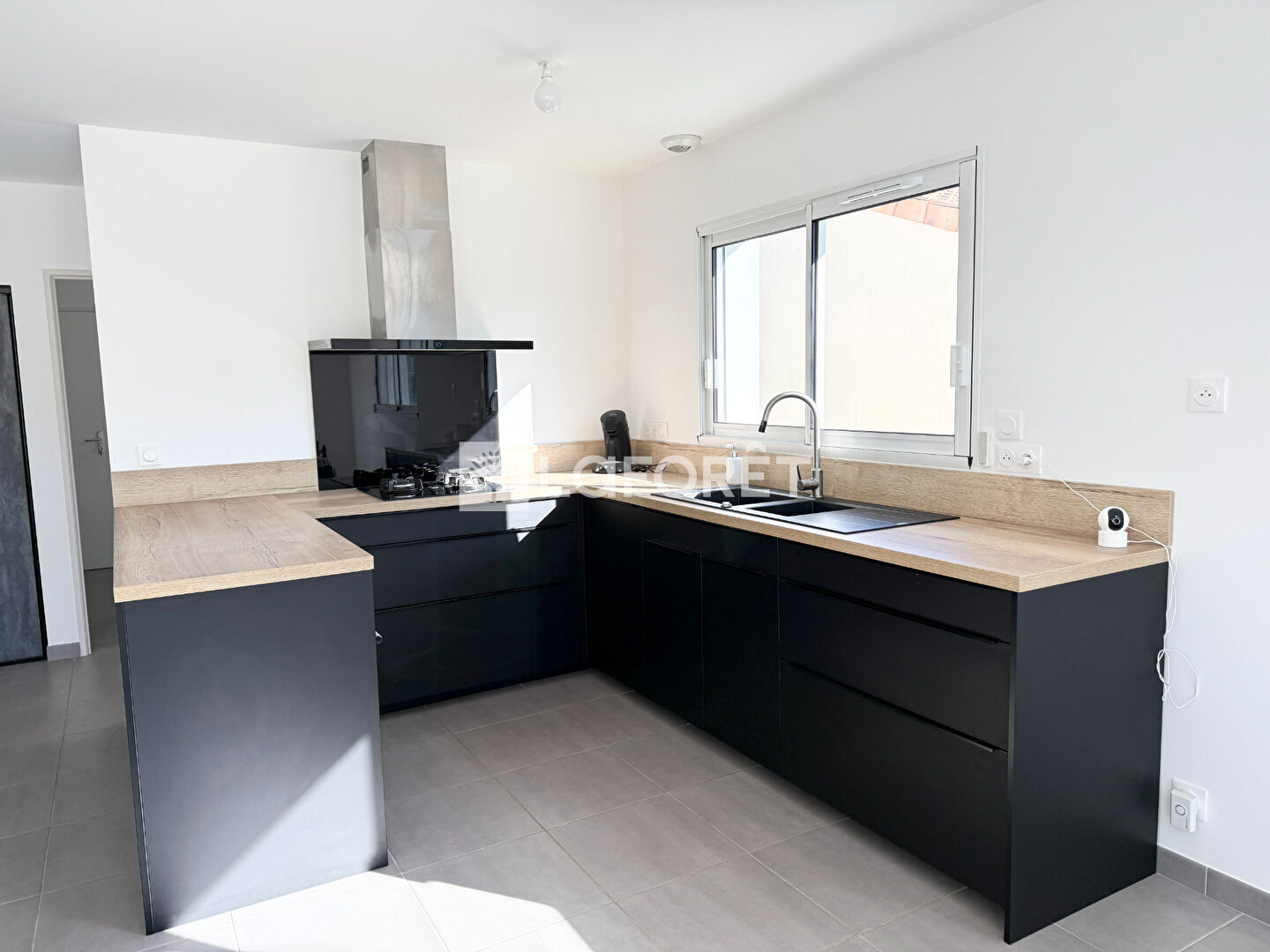 Elle se compose d'une spacieuse pièce de vie lumineuse, avec une cuisine aménagée et entièrement équipée, donnant directement sur une terrasse carrelée.