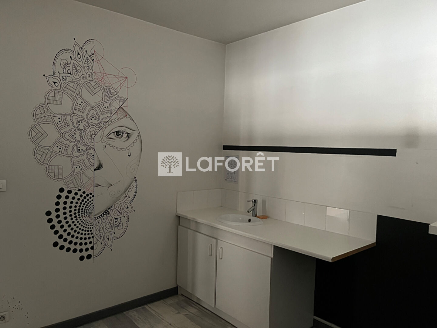 Pièce principale avec vitrine, avec une seconde salle de bonne taille équipée d'un point d'eau/ sanitaire et grand espace de stockage de près de 40m2 .