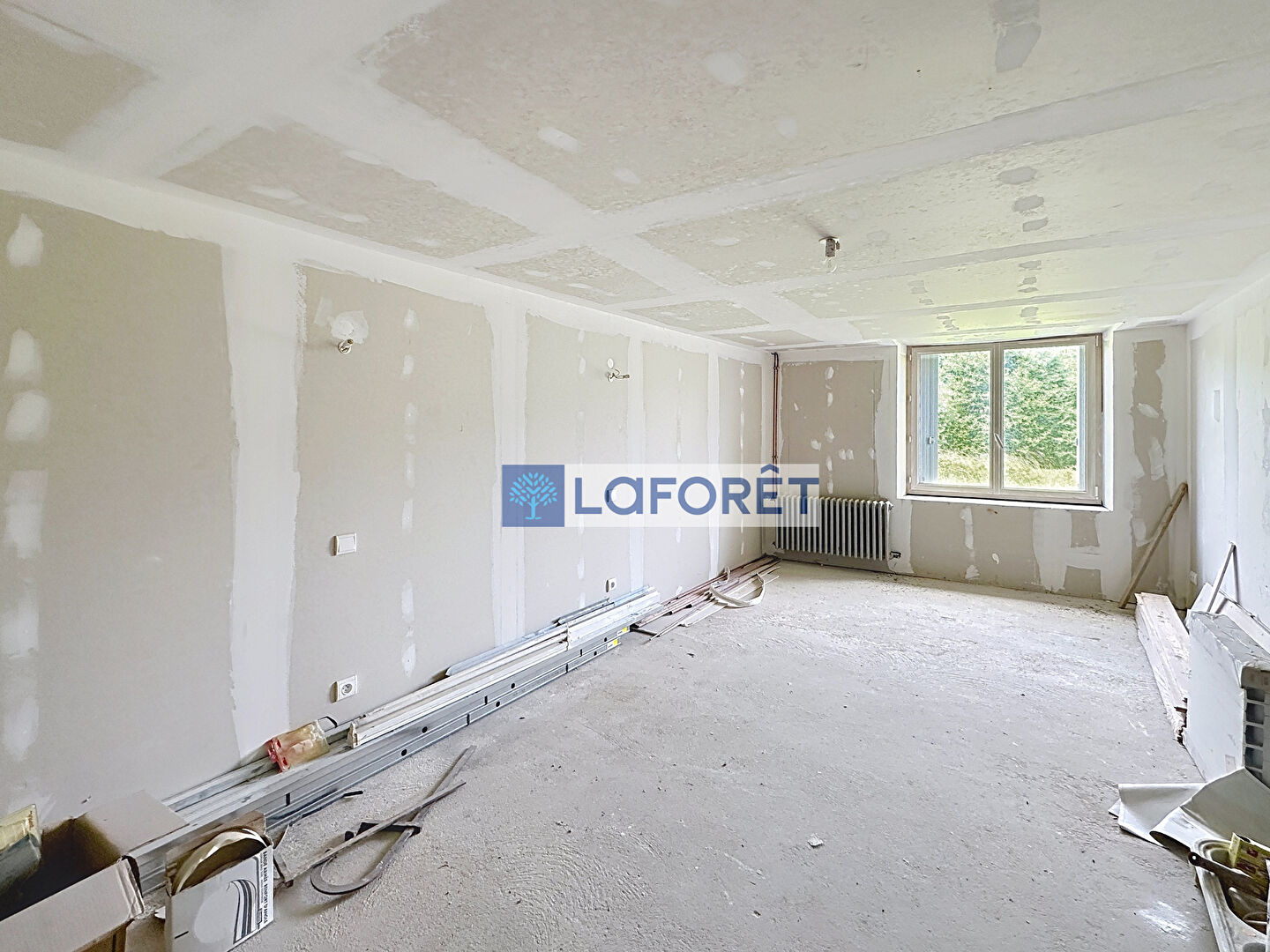 Rez-de-chaussée : deux grandes pièces lumineuses prêtes à accueillir votre future pièce de vie, cuisine ou salon.