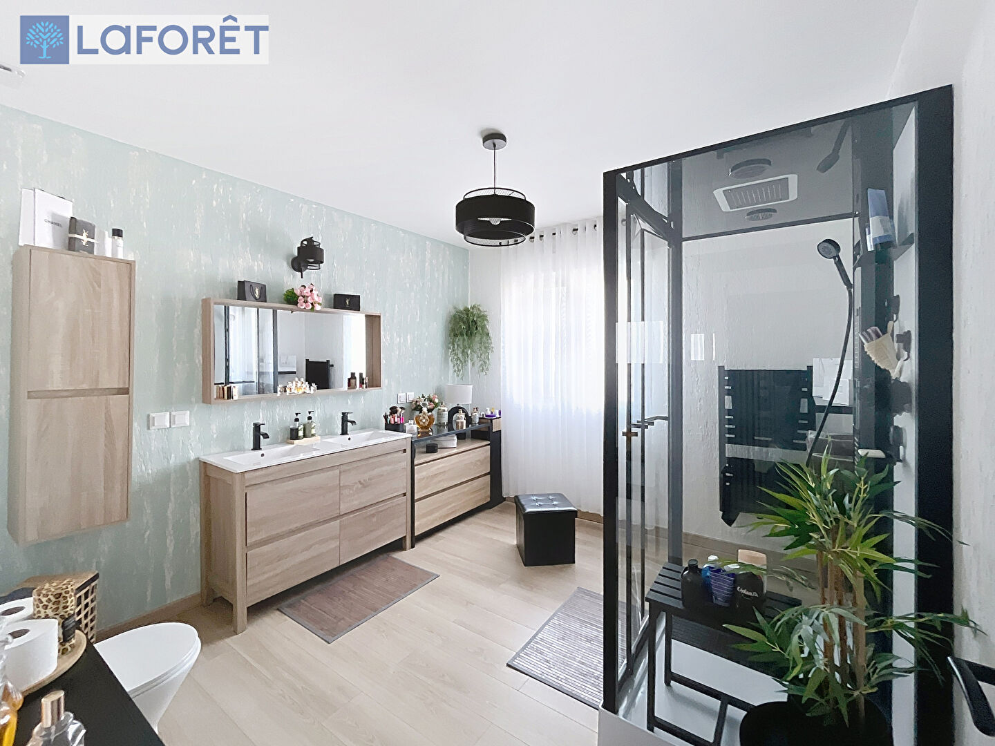 Côté nuit, deux chambres au calme, un dressing intégré et une salle d'eau d'un très beau standing. Cette dernière associe matériaux qualitatifs, rangements généreux, grande douche moderne et ambiance lumineuse parfaitement maîtrisée. Un espace pensé pour le confort, sans excès mais avec une vraie signature.