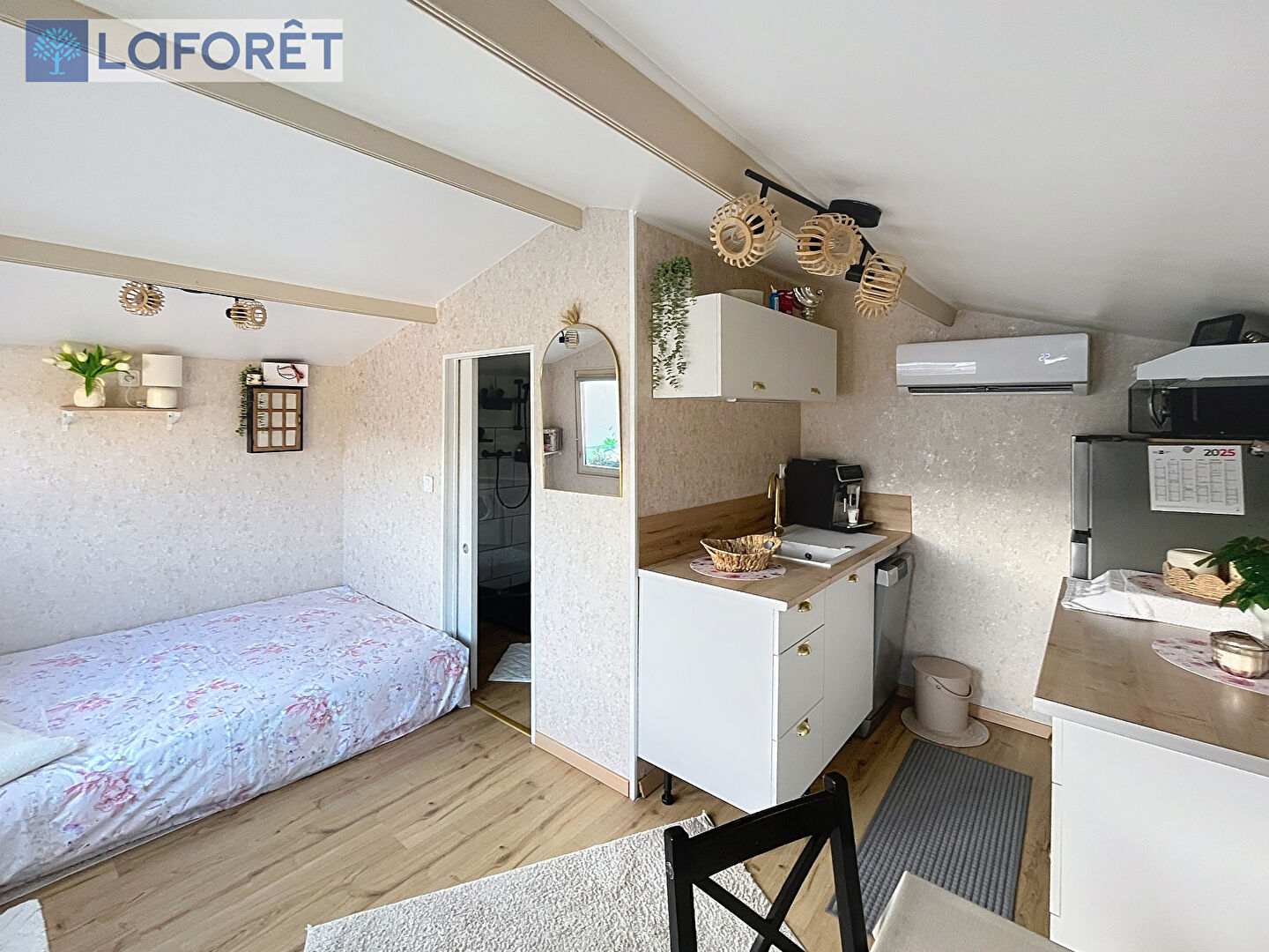 Sur l'arrière du terrain, un studio entièrement autonome vient compléter le bien. Parfait pour accueillir famille et amis dans un confort total grâce à sa kitchenette, sa salle d'eau avec wc et son espace nuit. Une vraie annexe de réception, pratique, intime et très appréciable.