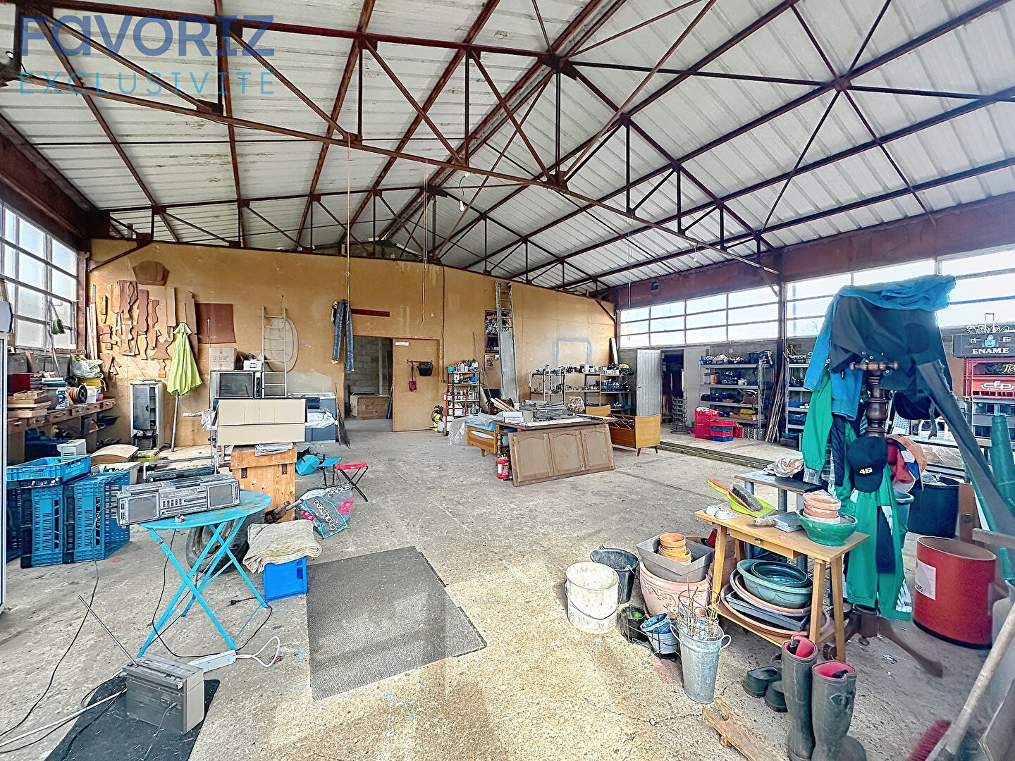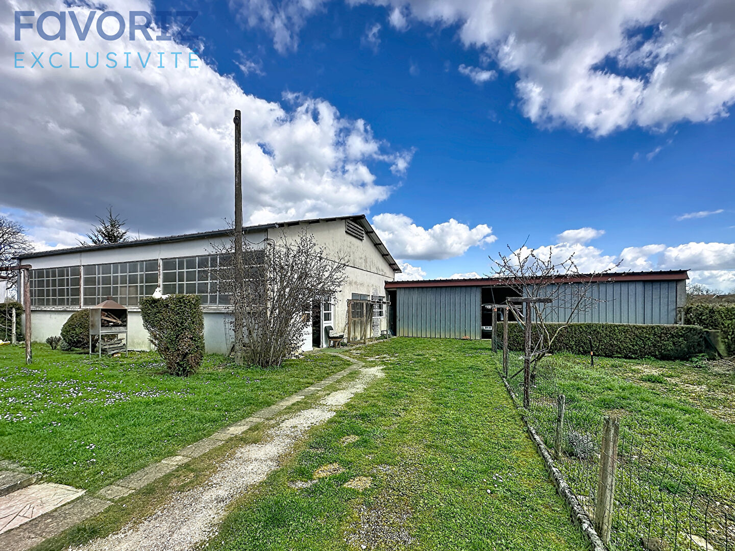 Un immense hangar de 190 m² à l'arrière, parfait pour activité professionnelle, stockage ou projets personnels