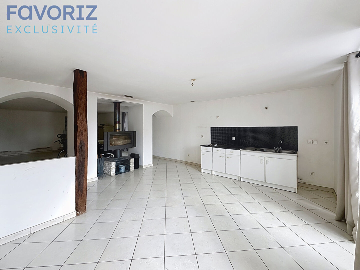 Une partie habitable est déjà existante, équipée d'un chauffage au bois, permettant d'occuper les lieux tout en poursuivant les travaux.