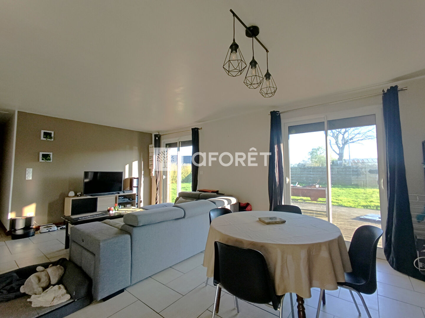 Vous y trouverez une cuisine aménagée et équipée, ouverte sur un salon/séjour lumineux équipé d'un poêle à bois, exposé plein Sud.