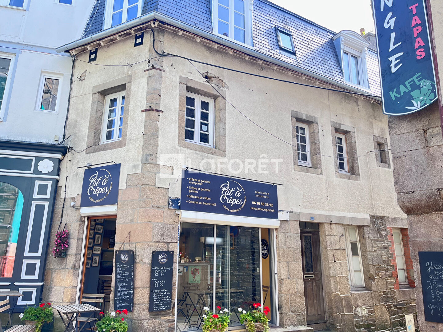 Immeuble situé au coeur de Lannion, composé d'un local commercial actuellement loué et d'un appartement à rénover en totalité composé de 4 pièces de 63 m²