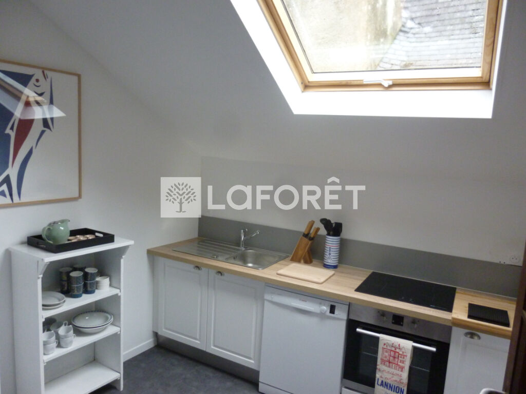 Immeuble du 16ème, situé au coeur de Lannion avec local commercial au rez de chaussée. réserve avec point d'eau et w.c, à l'étage appartement sur trois niveaux comprenant 3 chambres, un salon, une cuisine, deux salles de bains et deux w.c .