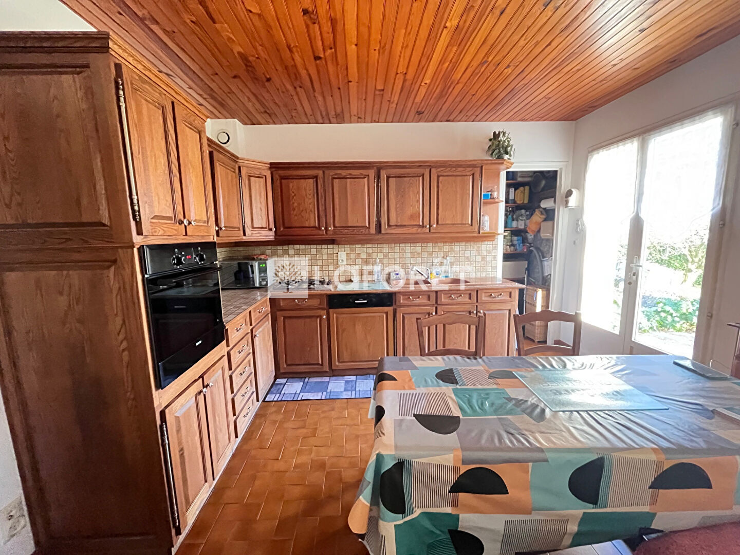 Elle comprend 4 chambres et un bureau et est habitable de plain pied. Son salon de 35 m² orienté au sud offre un accès direct à la terrasse avec vue sur le jardin et est équipé d'une cheminée avec insert, sa cuisine de plus de 12 m² qui peut être ouverte sur le séjour.