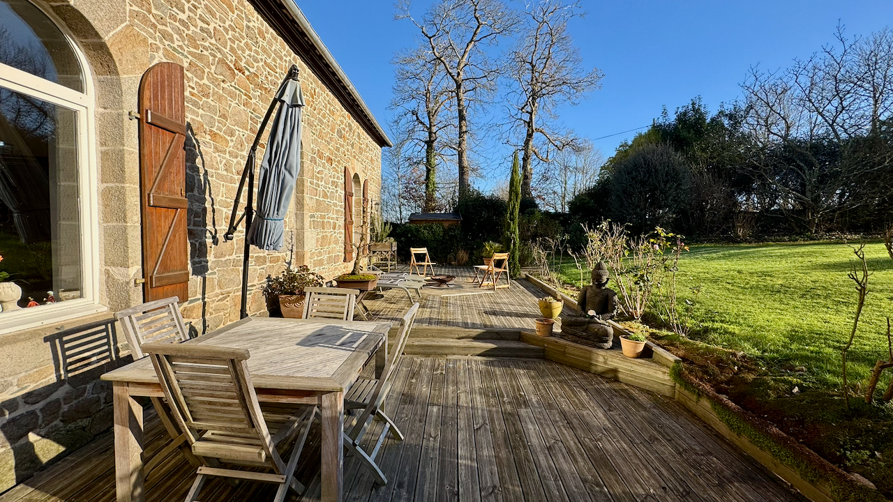 Sa grande terrasse invite à la détente en extérieur.