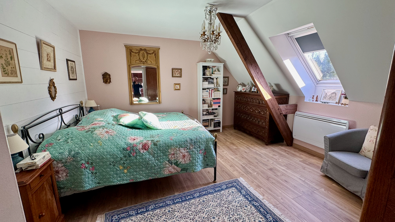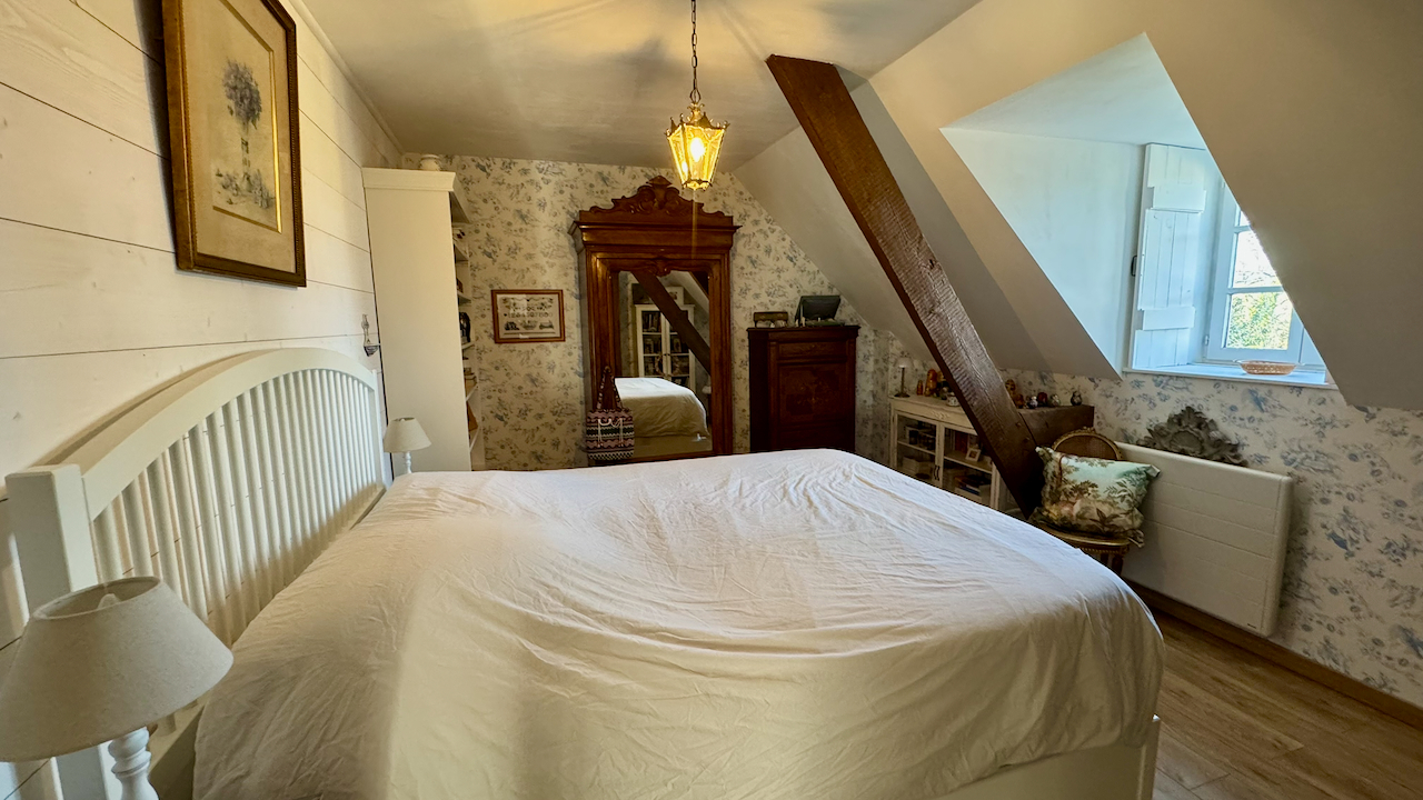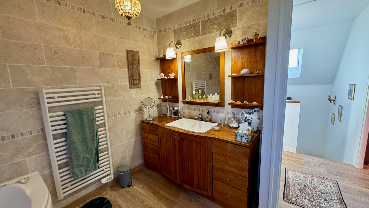 L'étage est réservé à l'espace nuit avec 3 grandes chambres dont une avec salle d'eau privative et espace laverie, ainsi qu'une salle de bains.