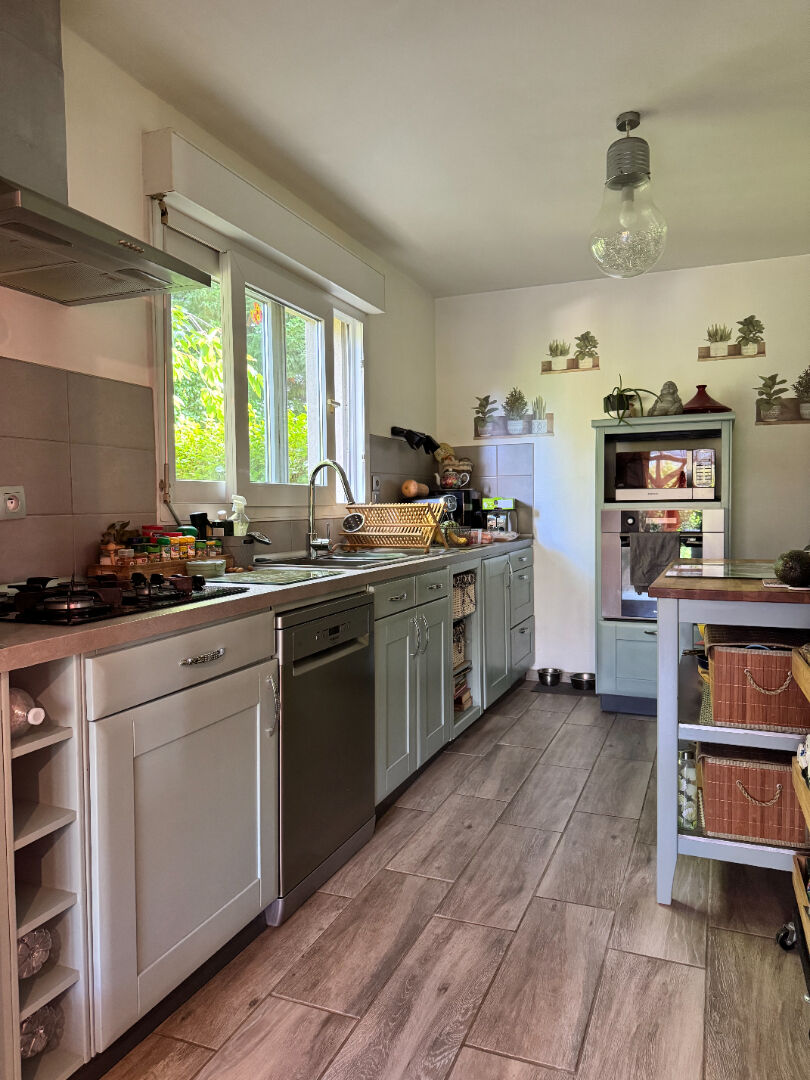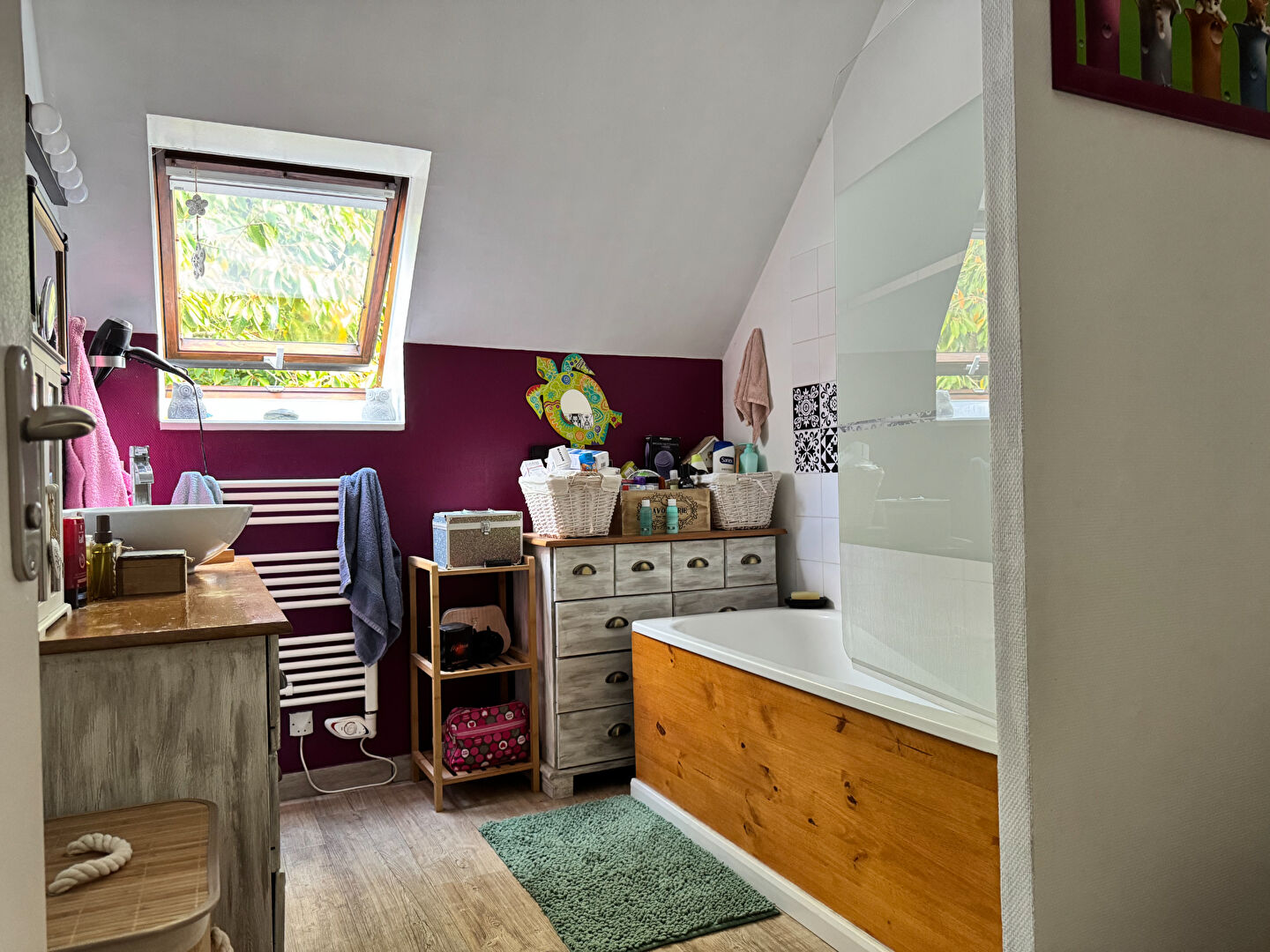 À l'étage, trois belles chambres, une salle de bains agréable ainsi qu'un espace dressing viennent compléter ce bien. Un grand garage avec coin buanderie apporte un confort supplémentaire.