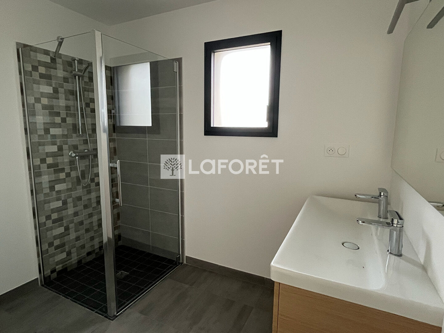 L'entrée s'ouvre directement sur un salon-séjour lumineux avec cuisine ouverte aménagée et équipée, constituant un espace de vie spacieux et convivial.