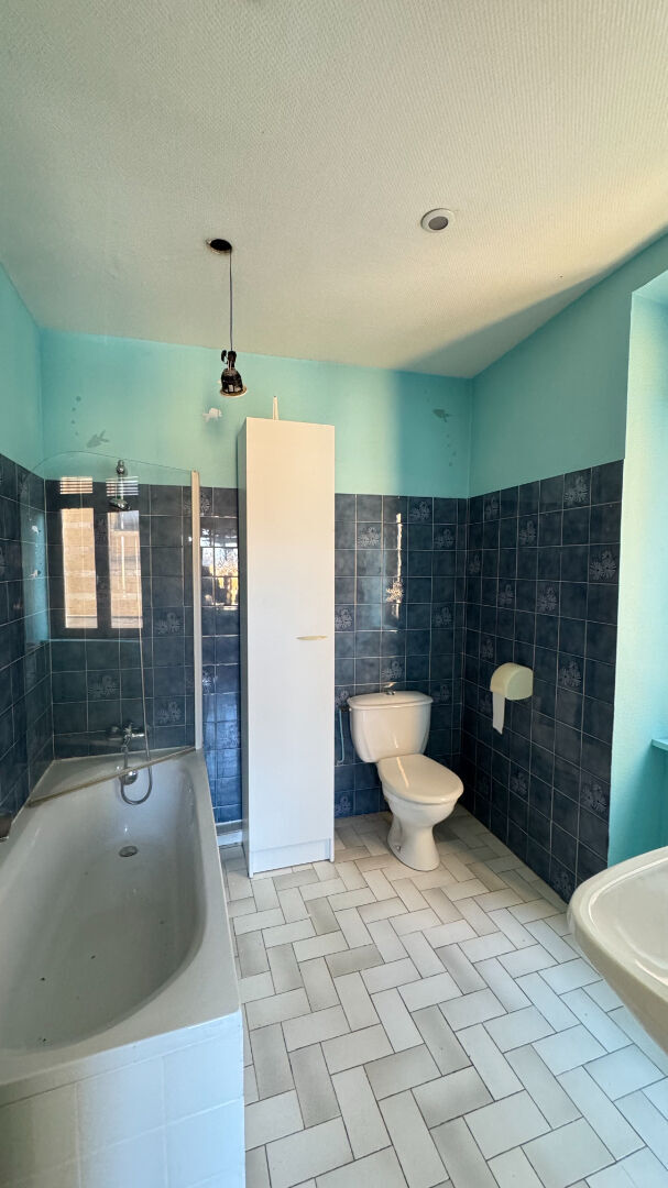 - Un appartement de 60 m² environ au 1er étage, à rénover entièrement, comprenant 2 chambres, un séjour, une cuisine et une salle d'eau.