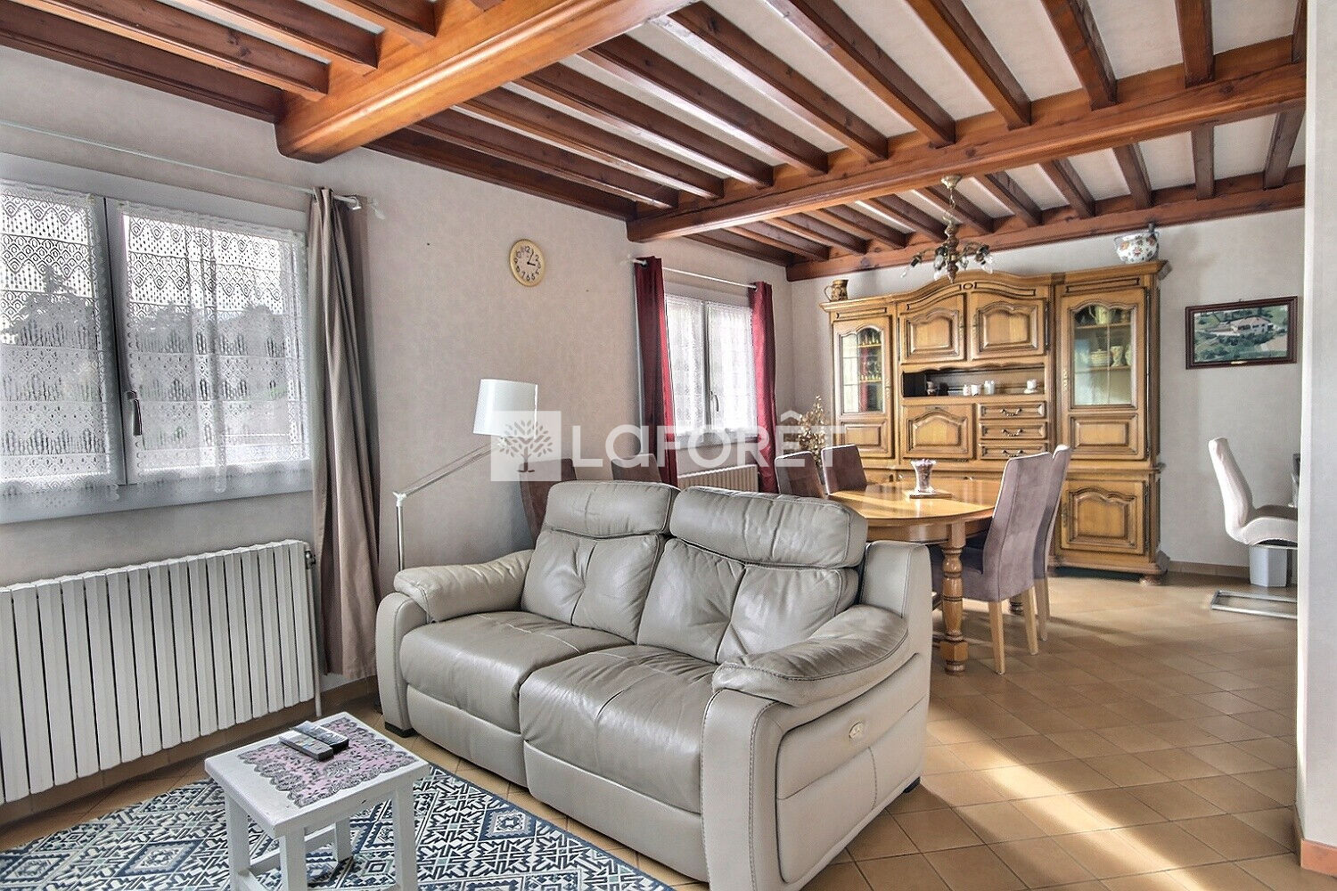 L'intérieur se compose d'un séjour chaleureux, d'une cuisine neuve et parfaitement équipée, ainsi que de trois chambres confortables, idéales pour une vie de famille.