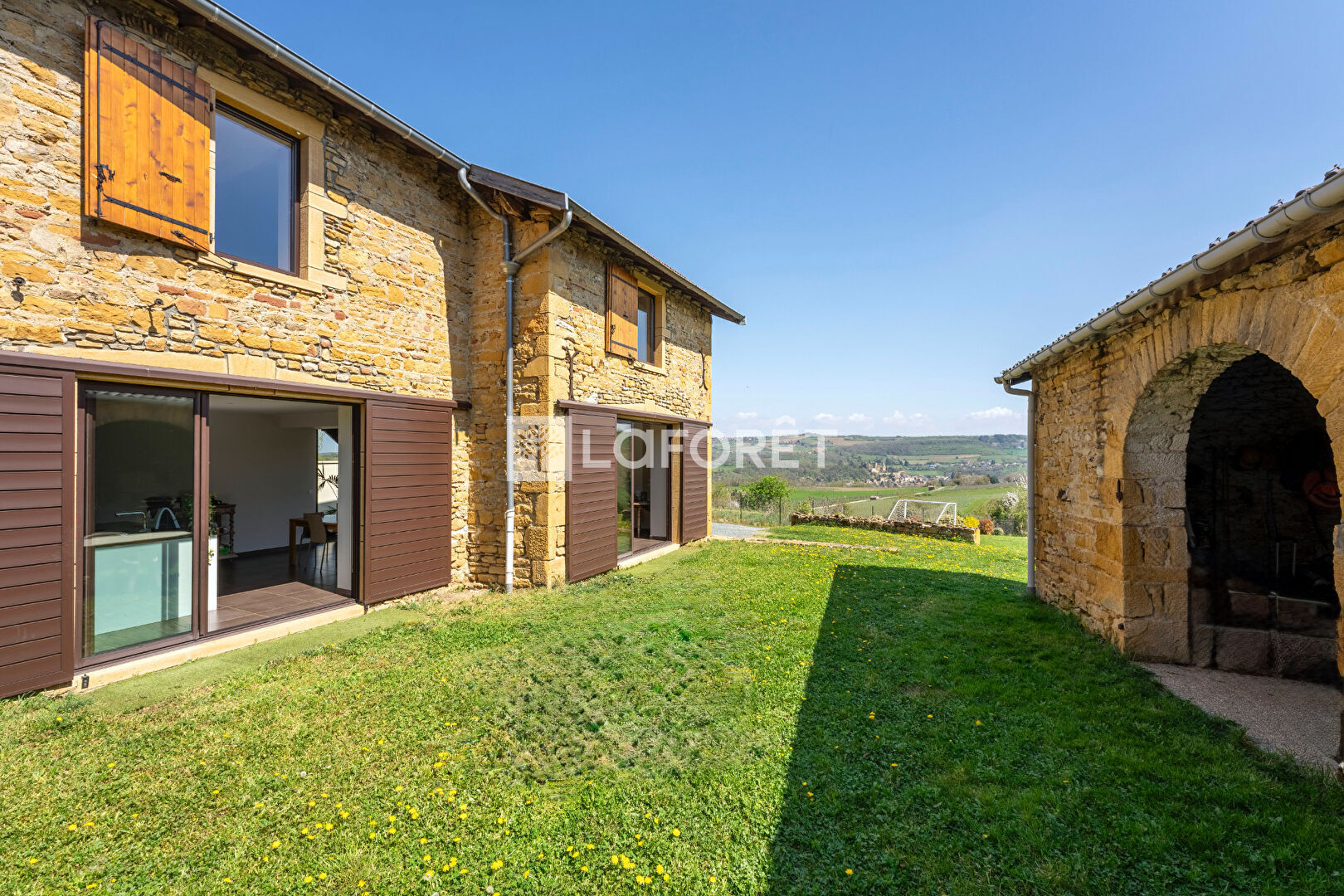 Aux portes du Beaujolais, dans un environnement calme et privilégié, découvrez cette maison en pierres dorées entièrement repensée par un architecte, alliant caractère, modernité et confort.