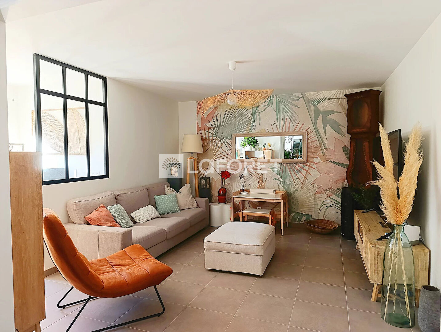Elle se compose d'une pièce de vie lumineuse d'environ 60 m² avec cuisine ouverte moderne, prolongée par une terrasse idéale pour les beaux jours. Un salon modulable avec portes à galandage permet de créer un espace bureau ou TV indépendant.