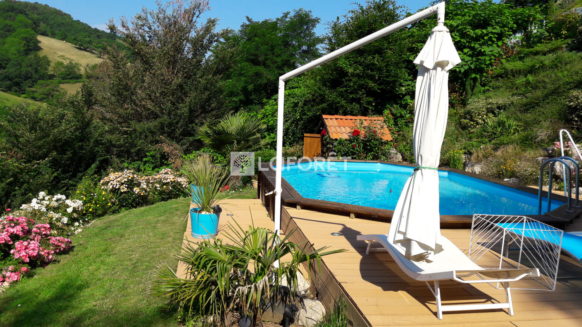 Le jardin, entièrement clôturé et arboré, est agrémenté d'un portail électrique et d'une allée goudronnée menant au garage. Côté détente, un espace avec piscine hors sol et plage en bois, à l'abri des regards, vous invite à savourer des moments de sérénité, entre cocktail au soleil et sieste en toute tranquillité.