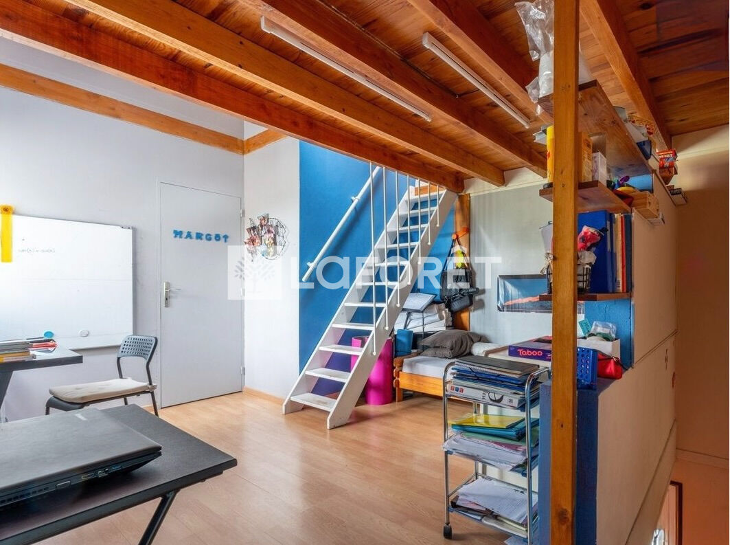 À l'étage, un espace mezzanine accueille un bureau qui mène à une spacieuse suite parentale de 21 m², avec salle d'eau privative et balcon. La partie nuit des enfants se compose d'un espace jeux et trois chambres, dont une en mezzanine, offrant un véritable cocon à vos enfants.