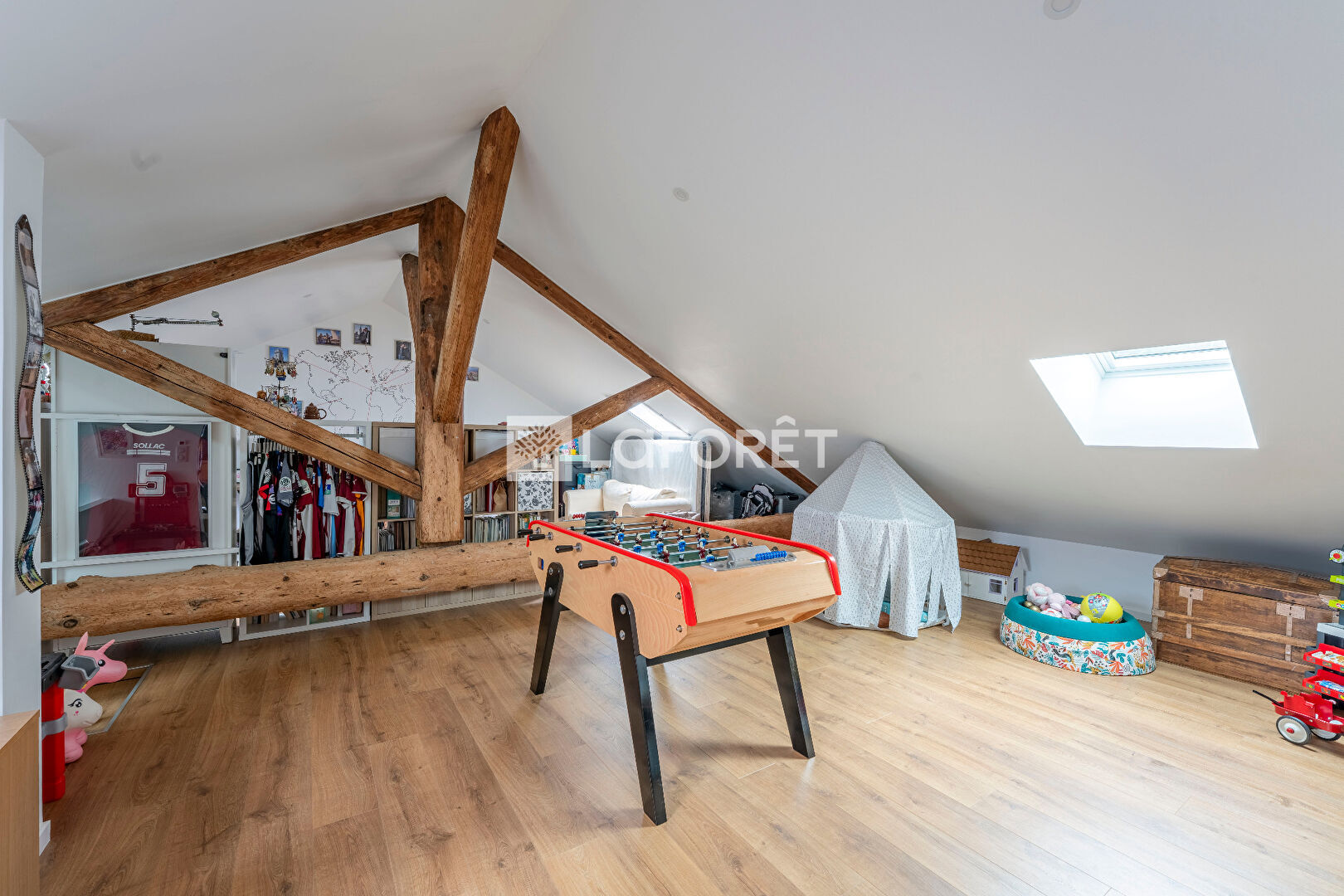 D'une superficie totale de 210 m2 (146,5 m2 carrez), vous disposerez, sur trois niveaux, d'une belle pièce de vie avec cuisine équipée ouverte, trois chambres spacieuses, une grande pièce sous toit pouvant servir de salle de jeux, bureau, chambre supplémentaire, une salle de bain, une cave avec espace buanderie.