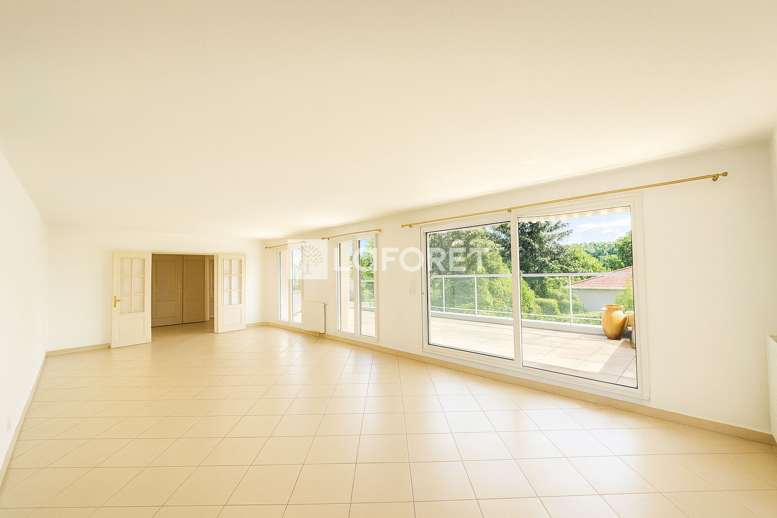 Il se compose, d'un grand salon-séjour de 45m² donnant sur une cuisine fermée et équipée, 4 chambres dont une suite parentale avec sa salle de bain, 2 salles d'eau, 2 WC, une buanderie, une grande terrasse (28 m²) exposée plein sud avec un accès par le salon et la cuisine et une terrasse de 11 m² avec un accès par une des chambres. Un garage double et une cave complètent ce bien.