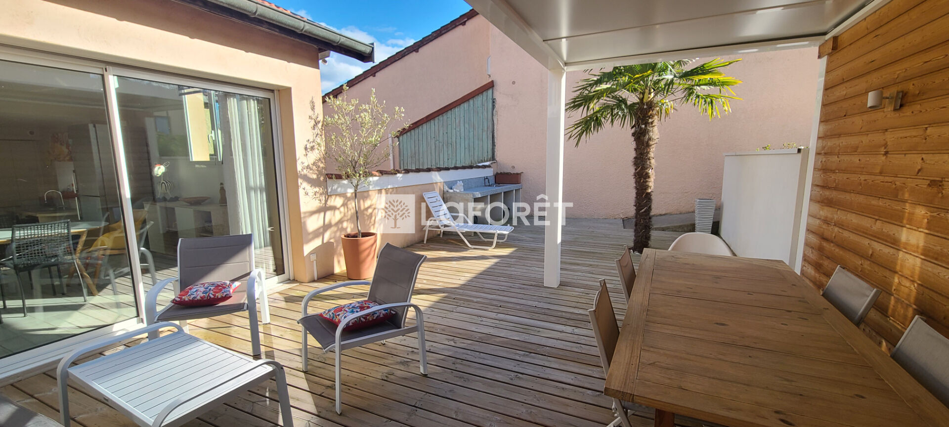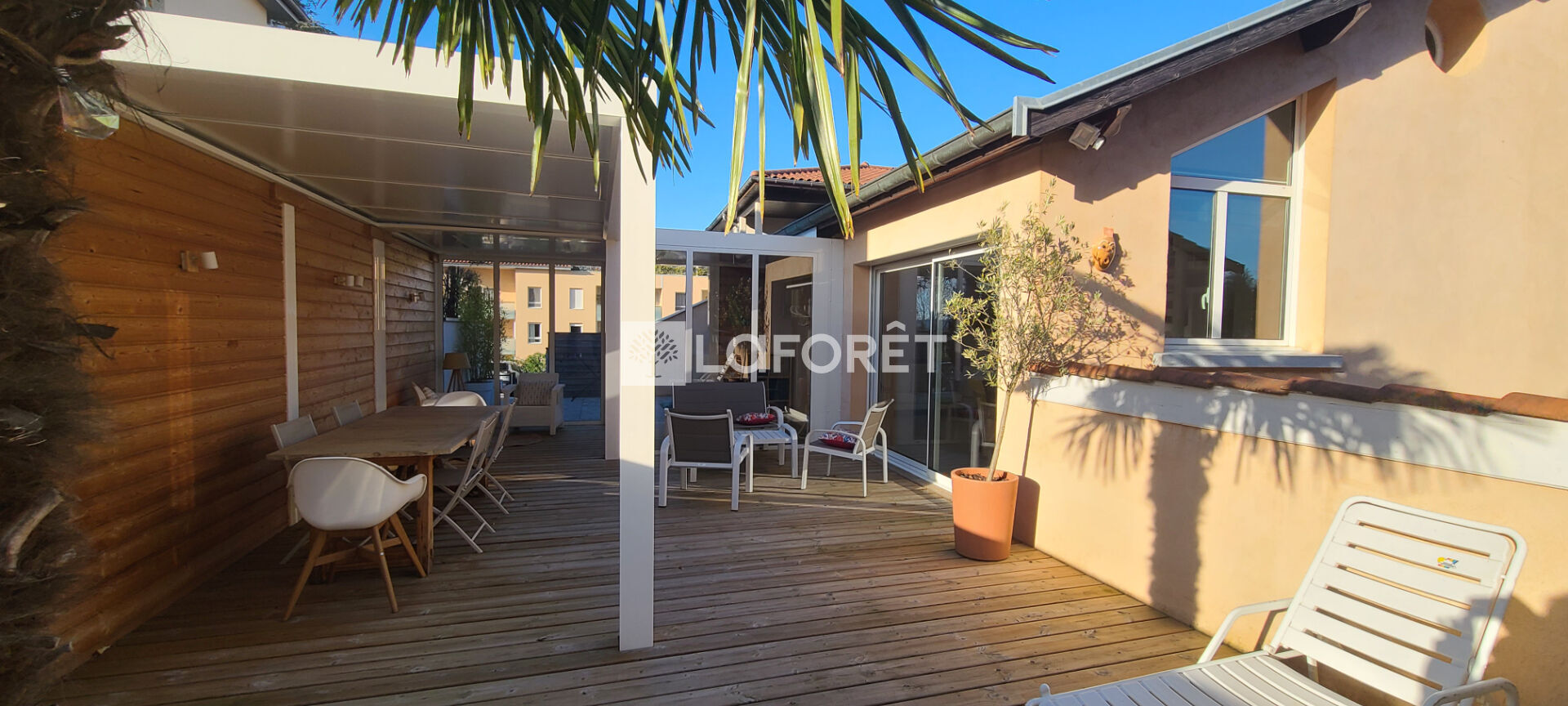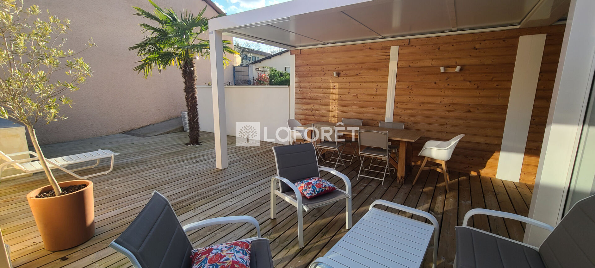 Prêts à vous sentir en vacances toute l'année ? Alors succès garanti pour cette grande maison meublée de 122m², qui présente l'avantage de vous offrir la proximité immédiate des commerces (à quelques mètres à pied) tout en garantissant un quotidien au calme et en toute intimité. Vous apprécierez particulièrement son extérieur cozy avec sa grande terrasse en bois de 80m² et sa jolie pergola.