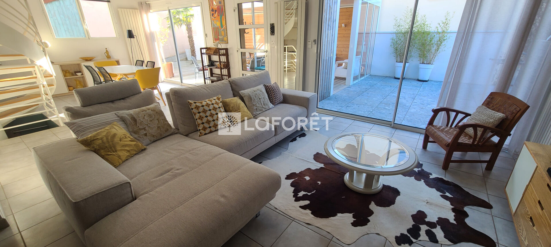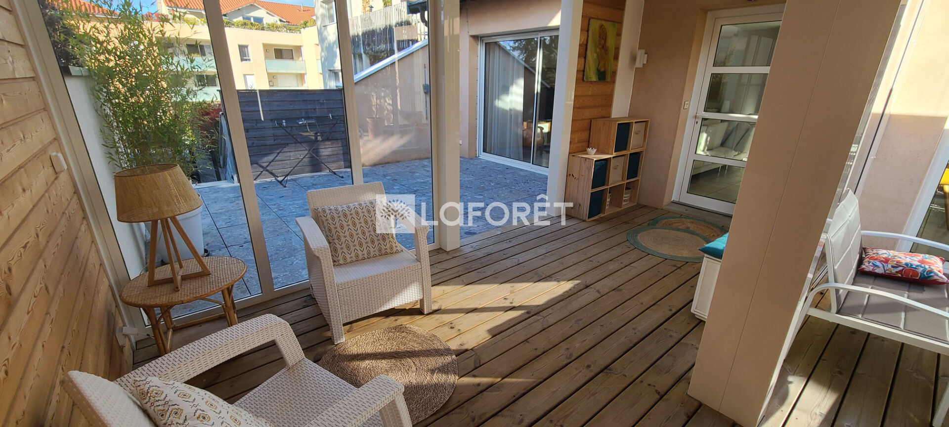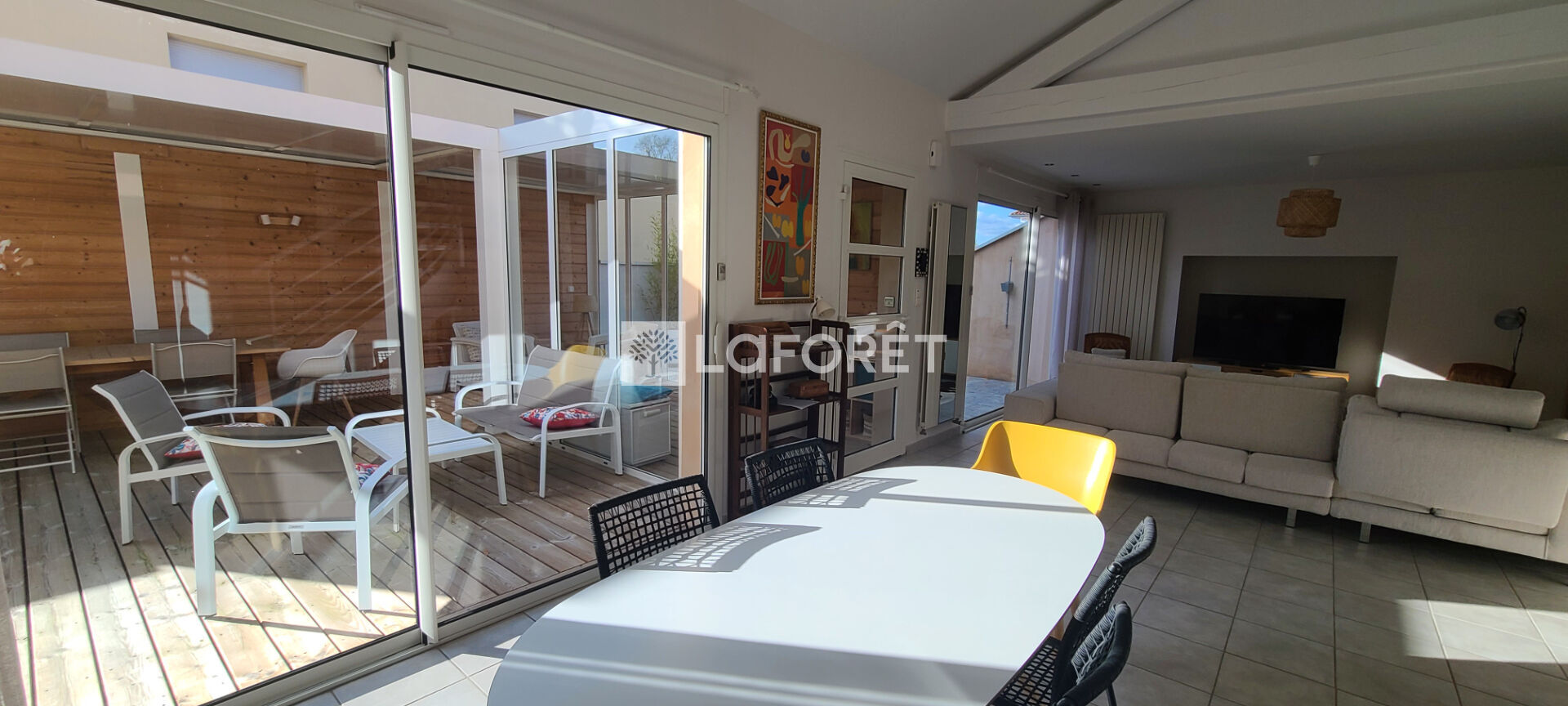 Prêts à vous sentir en vacances toute l'année ? Alors succès garanti pour cette grande maison meublée de 122m², qui présente l'avantage de vous offrir la proximité immédiate des commerces (à quelques mètres à pied) tout en garantissant un quotidien au calme et en toute intimité. Vous apprécierez particulièrement son extérieur cozy avec sa grande terrasse en bois de 80m² et sa jolie pergola.