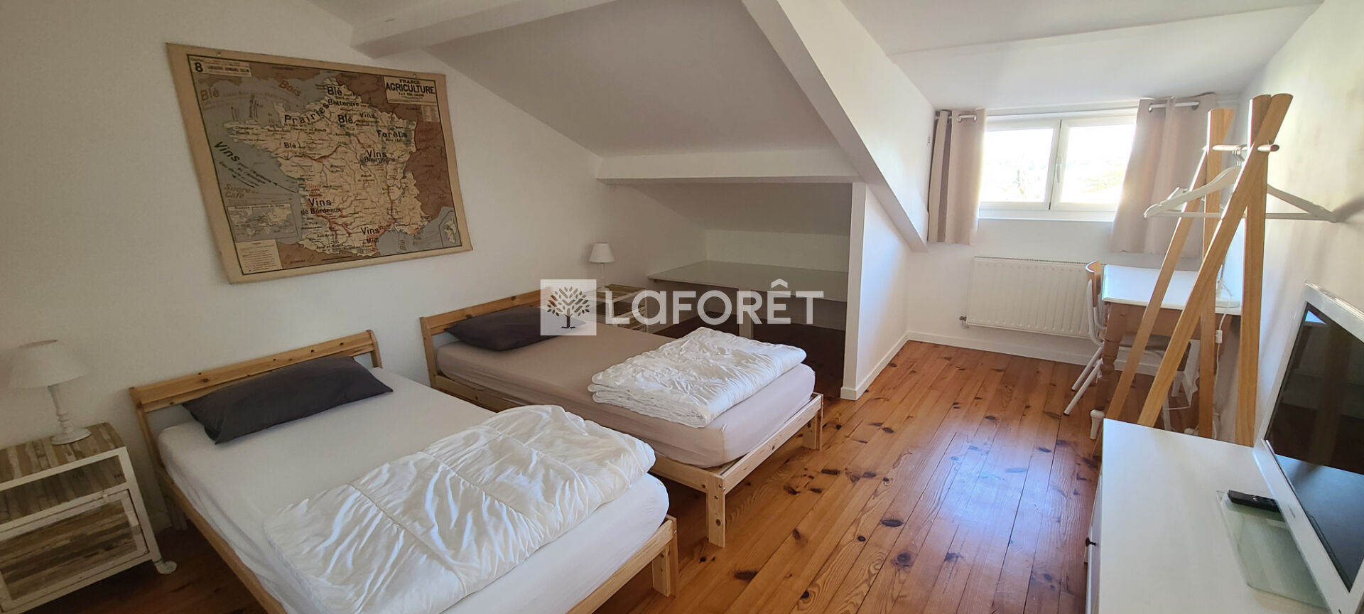 A l'étage, deux autres grandes chambres, une salle de bain avec WC, et un superbe bureau très lumineux.