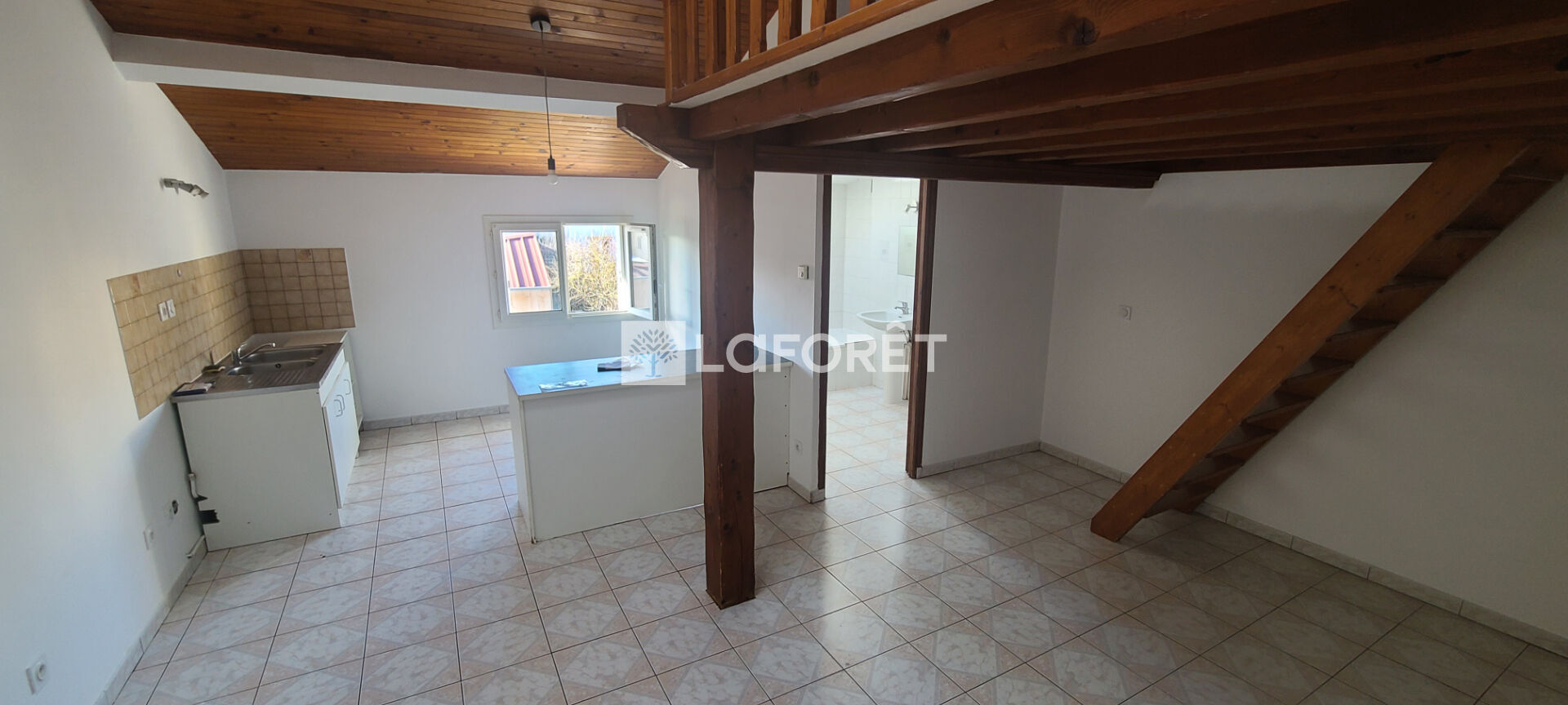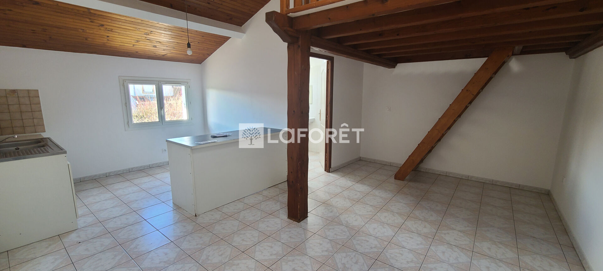 Il se compose d'une pièce de vie avec coin cuisine ouvert sur le séjour, une mezzanine, une chambre, un bureau, une salle de bain et WC séparé.
