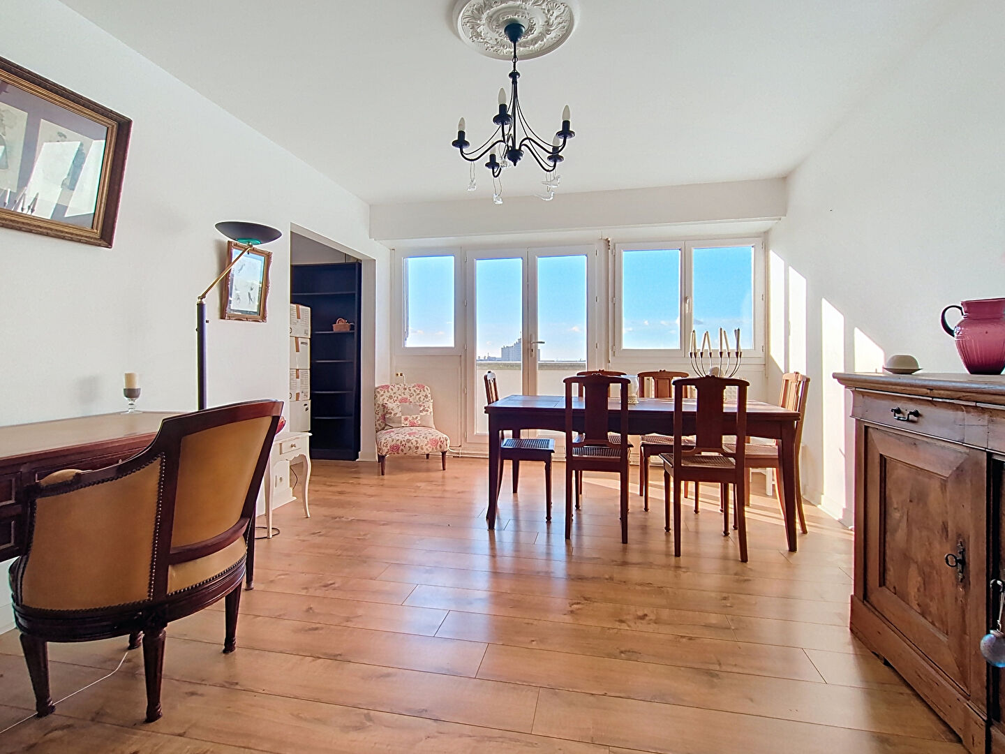 Cet appartement de 3 pièces baigné de lumière exposé Sud et Ouest, est au 8ème et dernier étage, il offre une magnifique vue dégagée sur la ville et la mer.