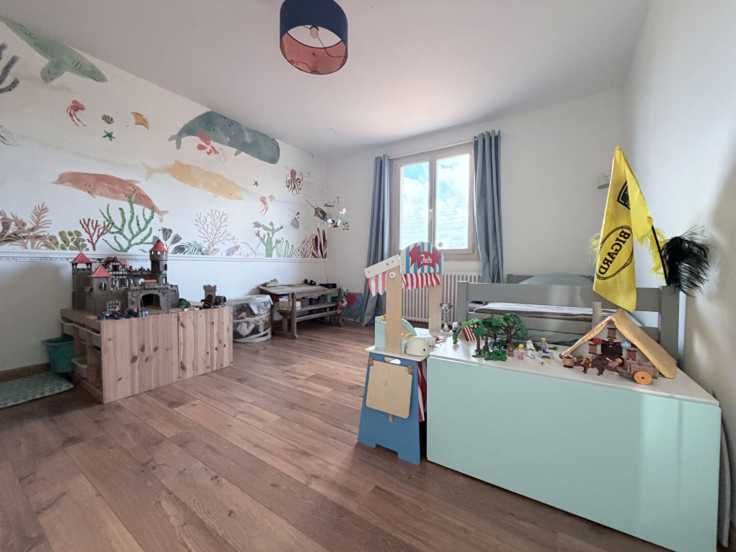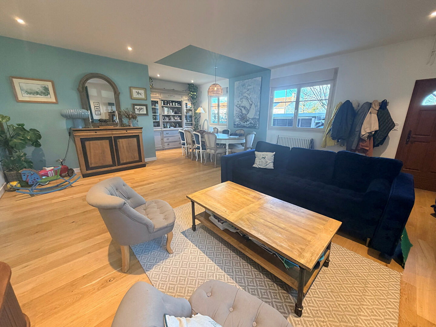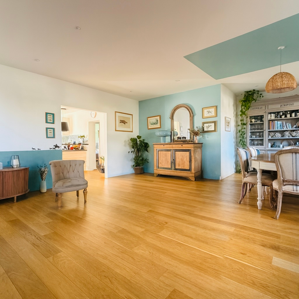 Aucuns travaux à prévoir, grande pièce de vie double avec cuisine dinatoire séparée.